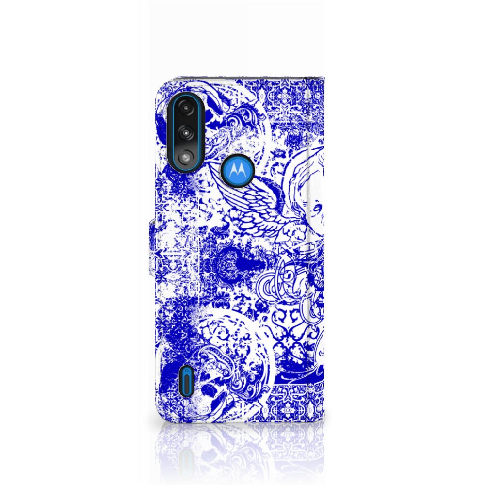Telefoonhoesje met Naam Motorola Moto E7i Power | E7 Power Angel Skull Blauw