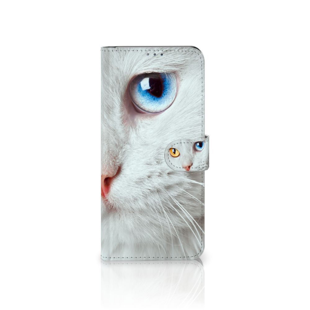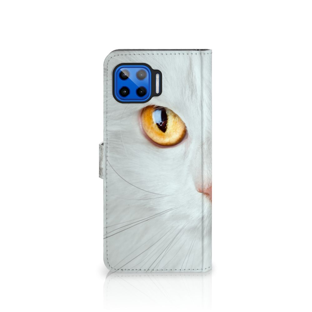 Motorola Moto G 5G Plus Telefoonhoesje met Pasjes Witte Kat