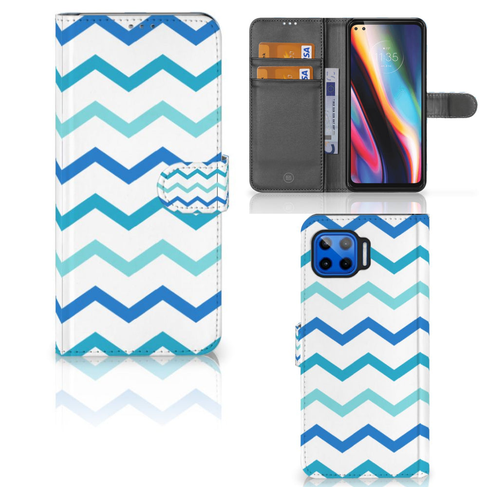 Motorola Moto G 5G Plus Telefoon Hoesje Zigzag Blauw