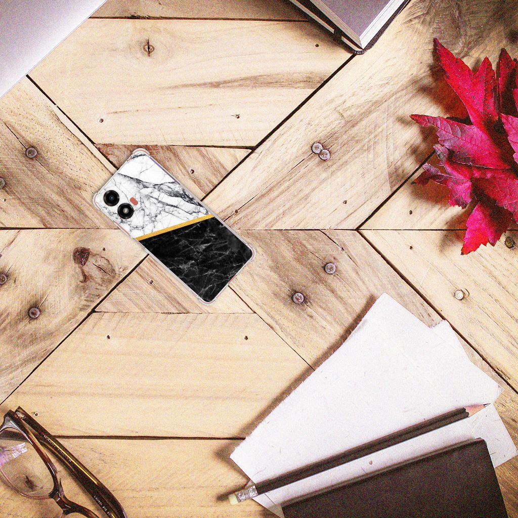 Motorola Moto G24 | G24 Power | G04 Anti-Shock Hoesje Marmer Wit Zwart - Origineel Cadeau Man