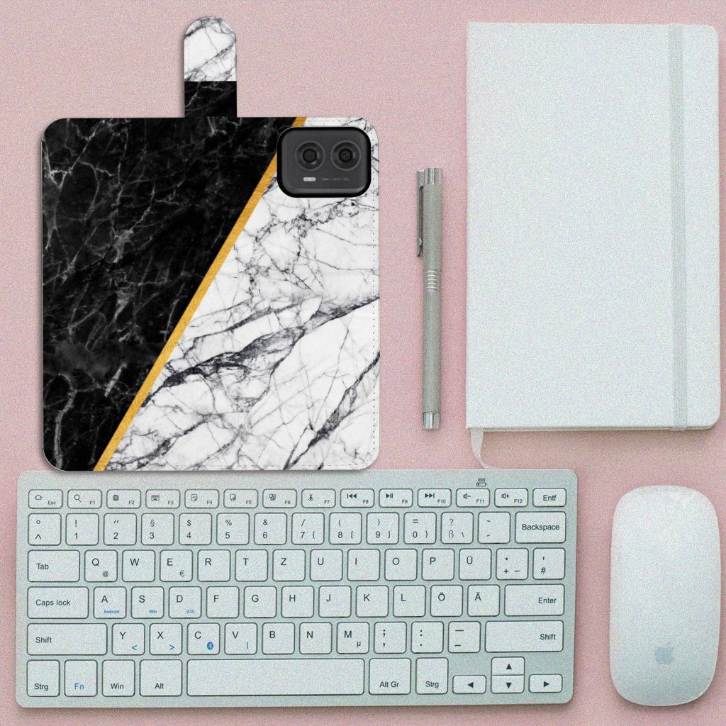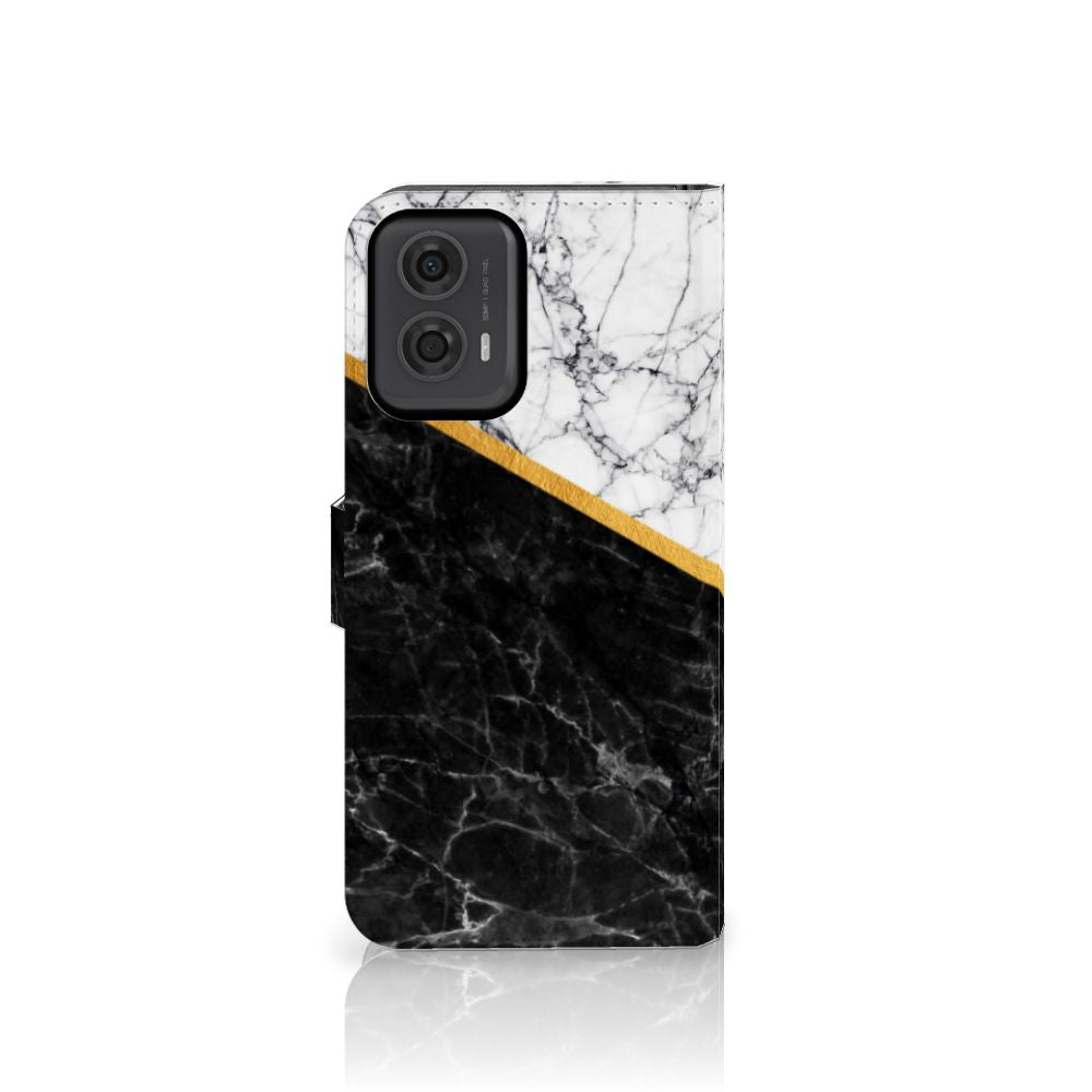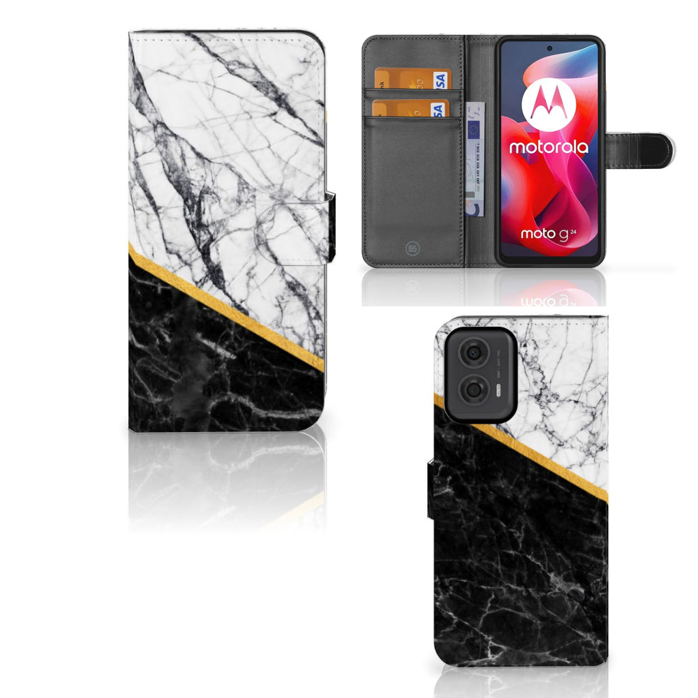 Motorola Moto G24 | G04 | G24 Power Bookcase Marmer Wit Zwart - Origineel Cadeau Man