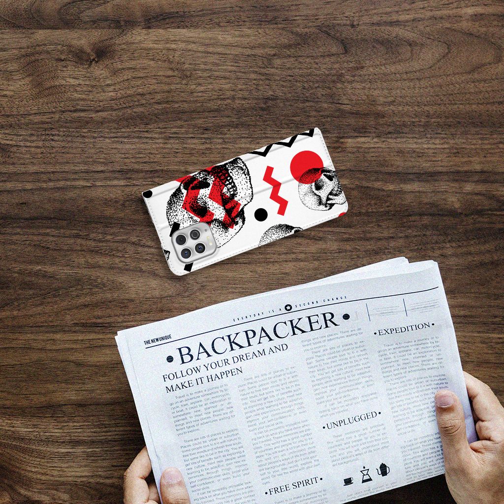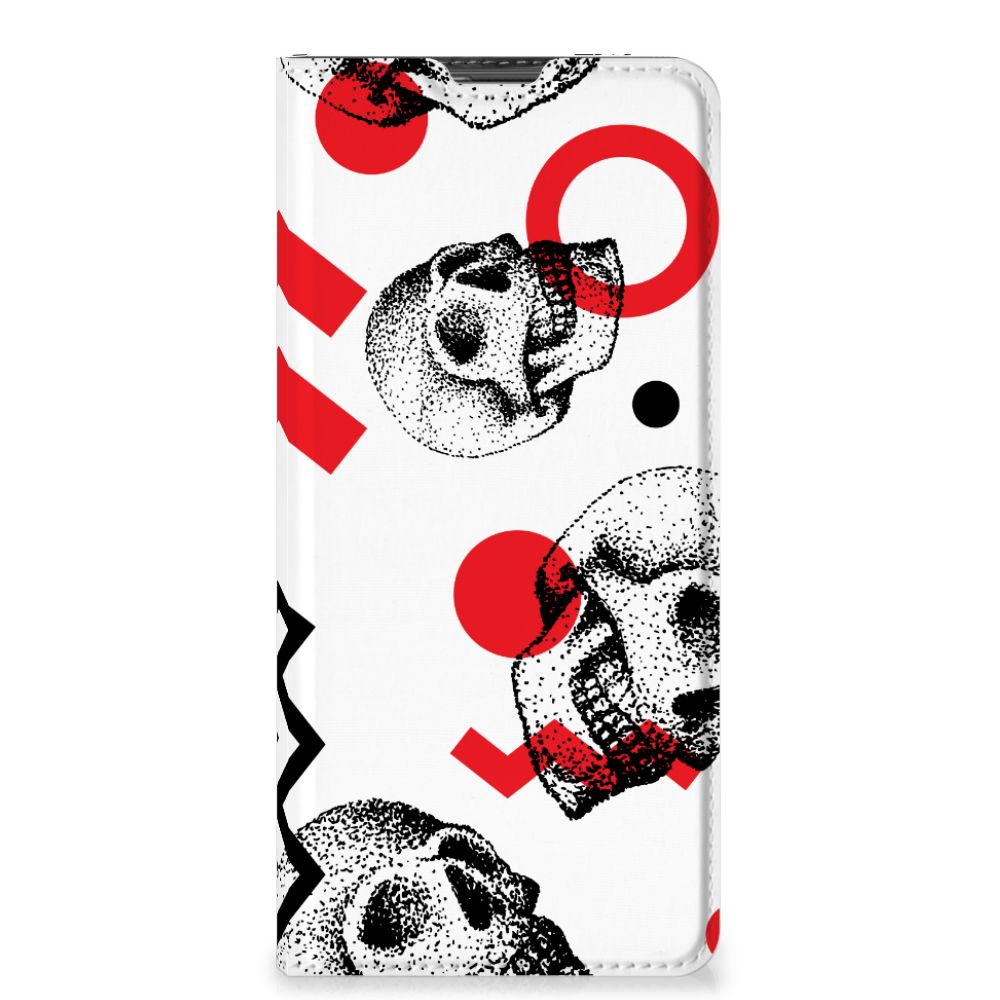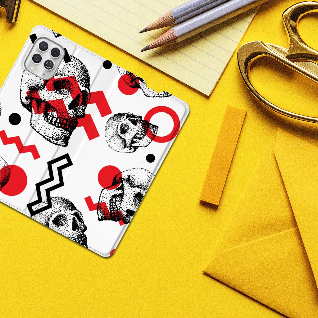 Mobiel BookCase Motorola Moto G100 Skull Red