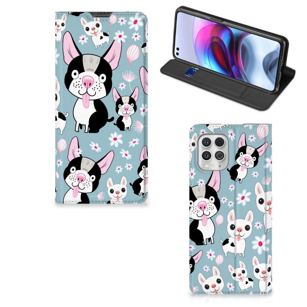 Motorola Moto G100 Stand Case Zwart Roze Vormen