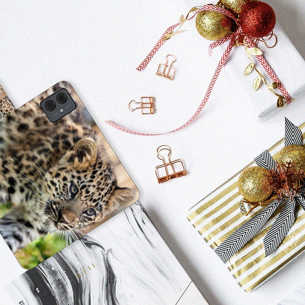 Motorola Moto G14 Telefoonhoesje met Pasjes Baby Luipaard
