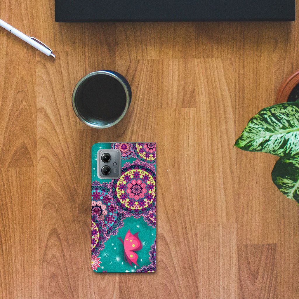 Motorola Moto G14 Bookcase Cirkels en Vlinders