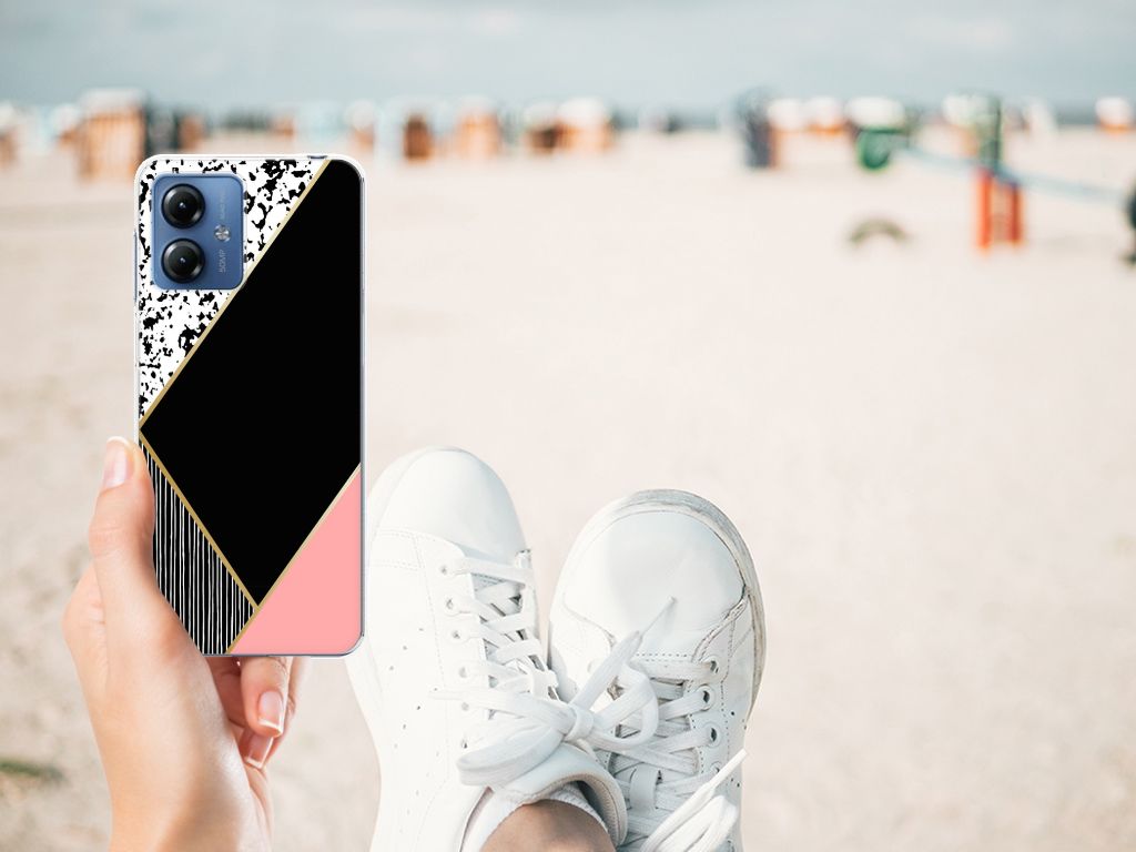 Motorola Moto G14 TPU Hoesje Zwart Roze Vormen
