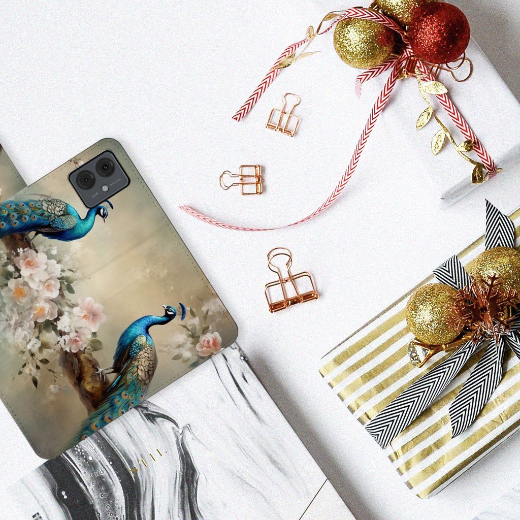 Telefoonhoesje met Pasjes voor Motorola Moto G14 Vintage Pauwen
