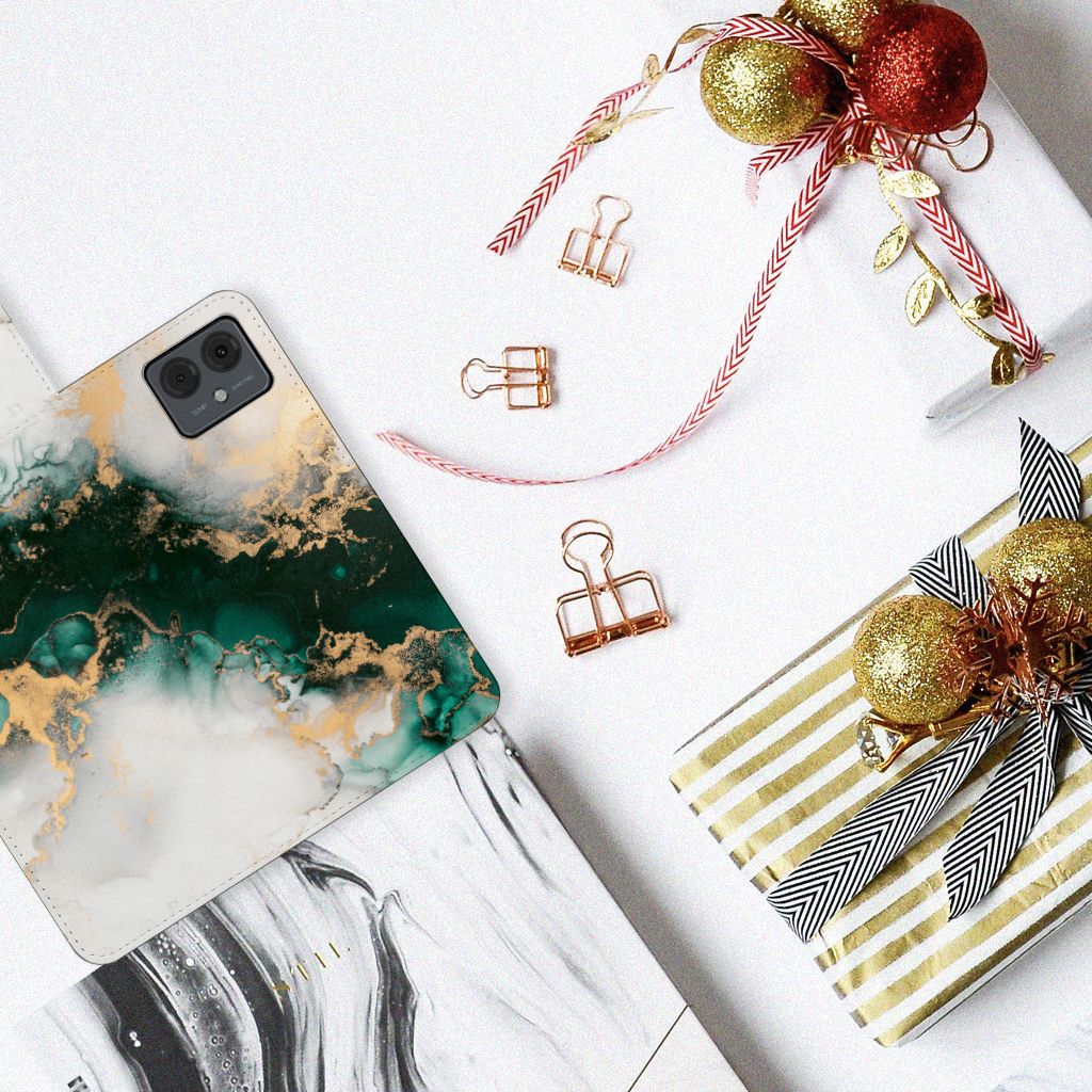 Bookcase voor Motorola Moto G14 Marmer Groen