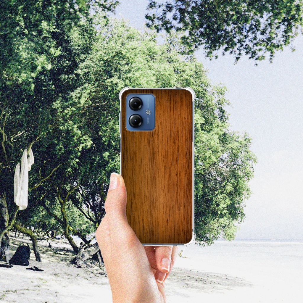 Motorola Moto G14 Stevig Telefoonhoesje Donker Hout