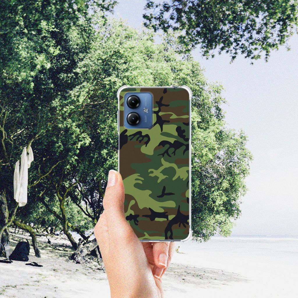 Motorola Moto G14 Doorzichtige Silicone Hoesje Army Dark