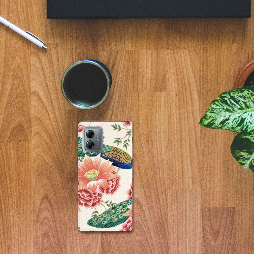 Smart Cover voor Motorola Moto G14 Vintage Bird Flowers
