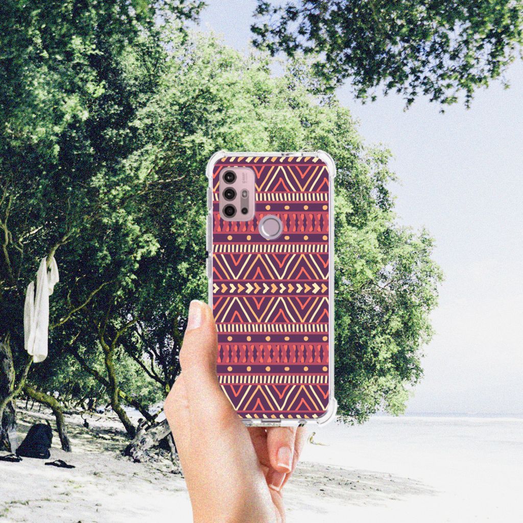 Motorola Moto G30 | G20 | G10 Doorzichtige Silicone Hoesje Aztec Paars