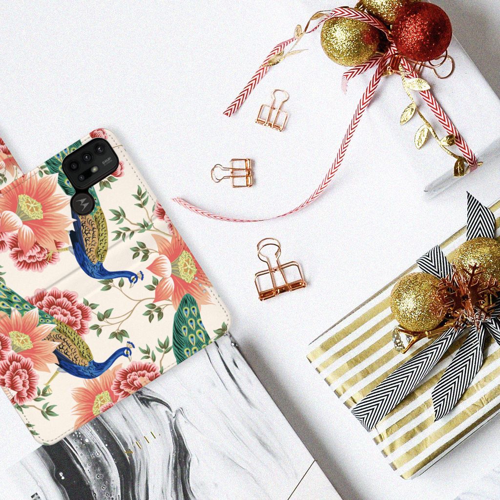 Telefoonhoesje met Pasjes voor Motorola Moto G10 | G20 | G30 Pink Peacock