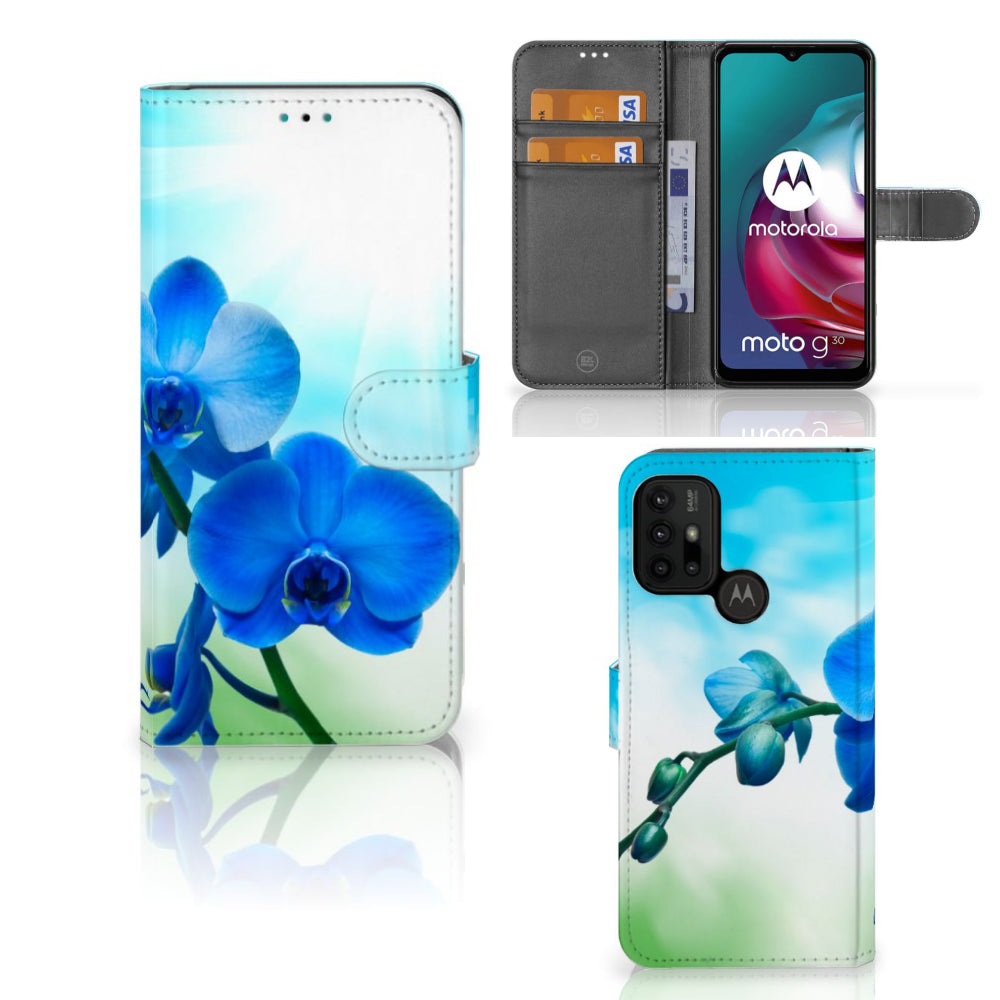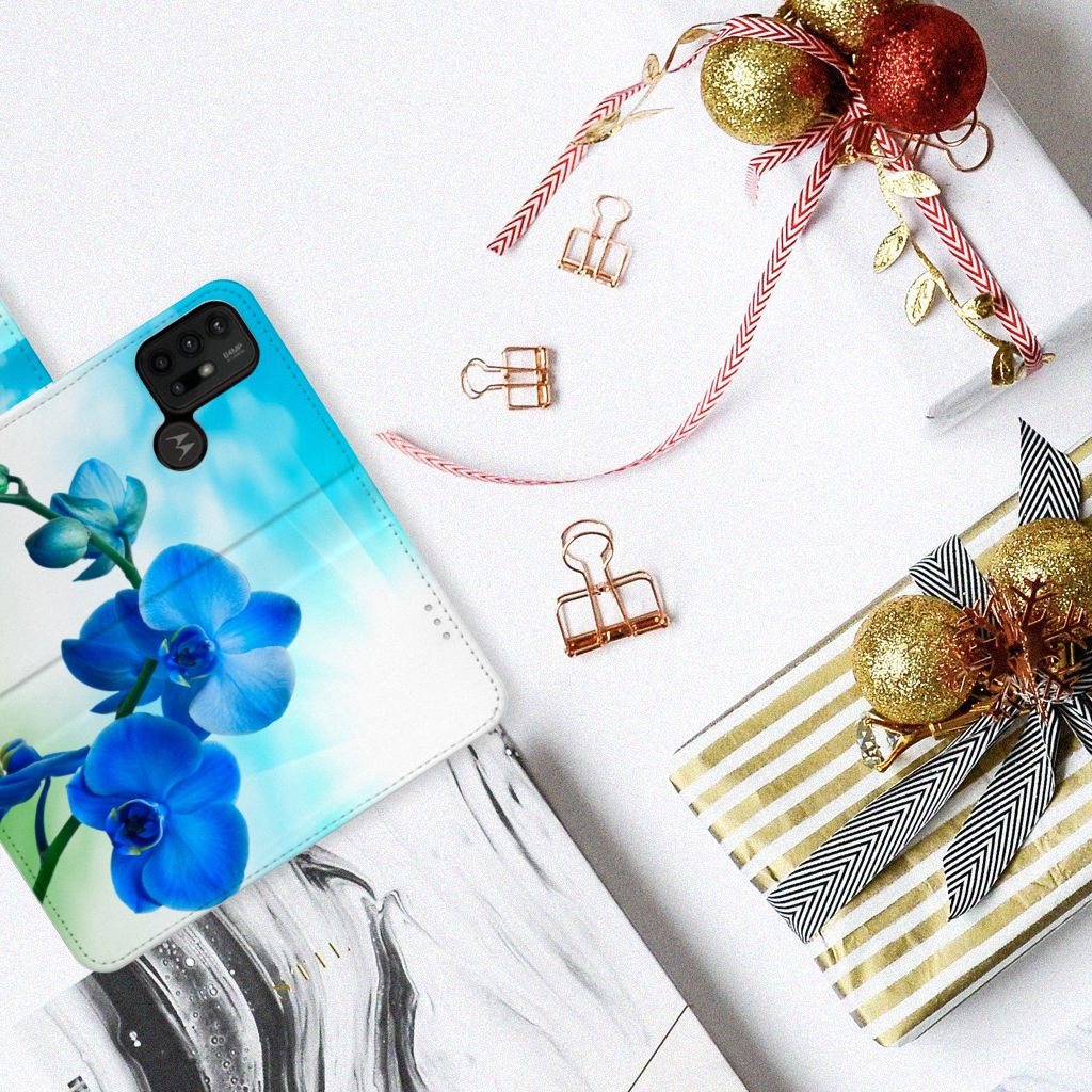 Motorola Moto G10 | G20 | G30 Hoesje Orchidee Blauw - Cadeau voor je Moeder