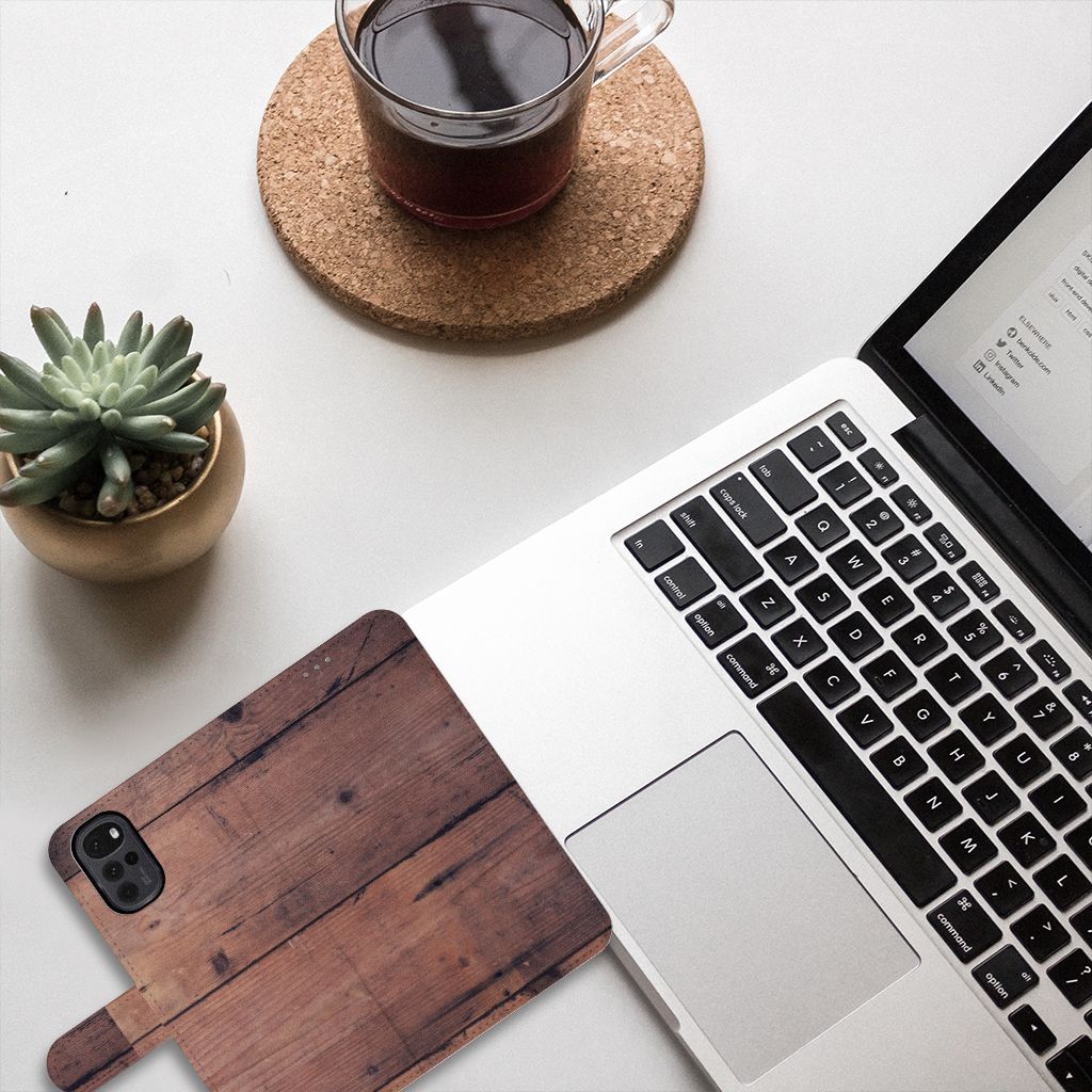Motorola Moto G22 Book Wallet Case Donker Hout