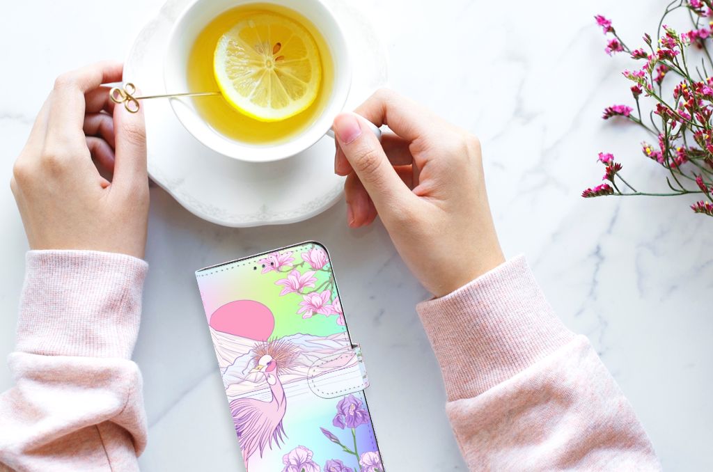 Motorola Moto G22 Telefoonhoesje met Pasjes Flamingo Palms