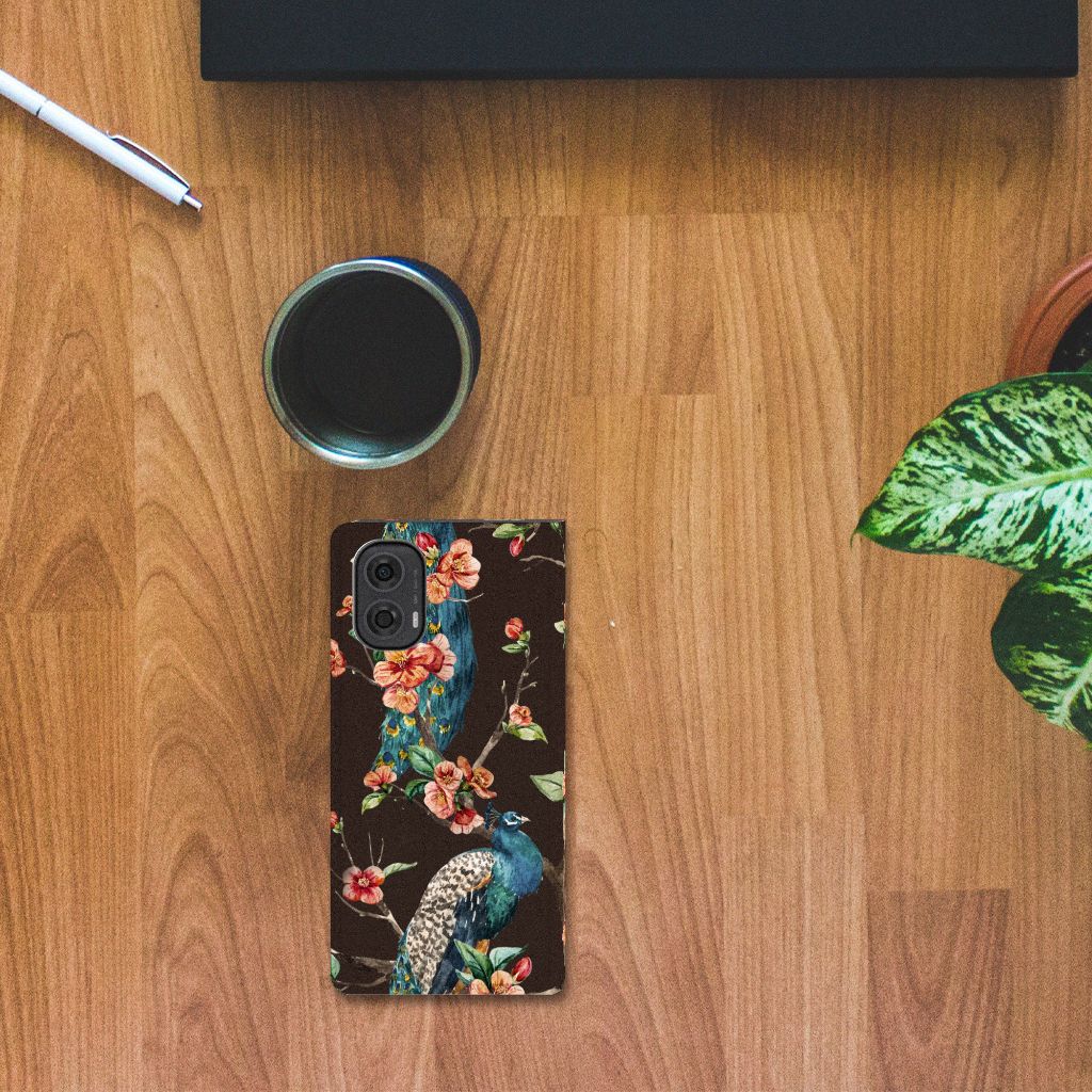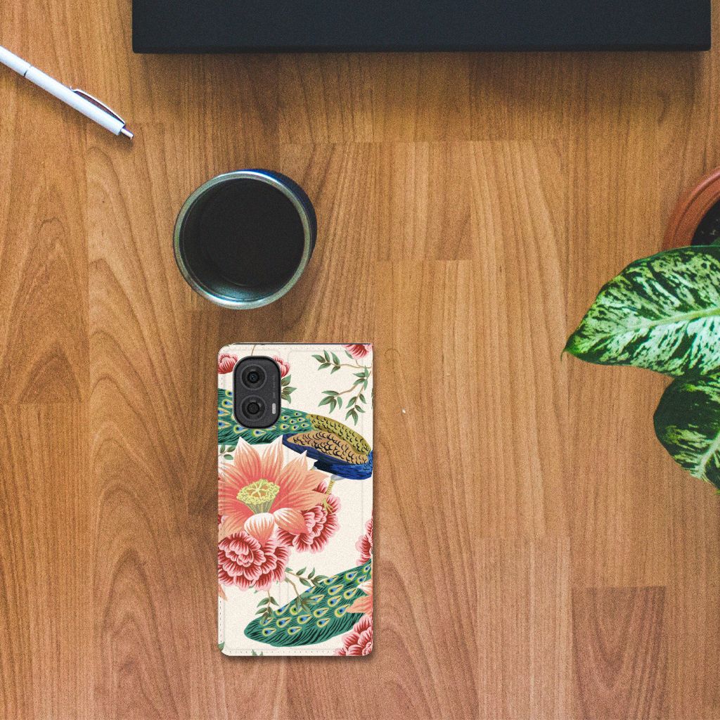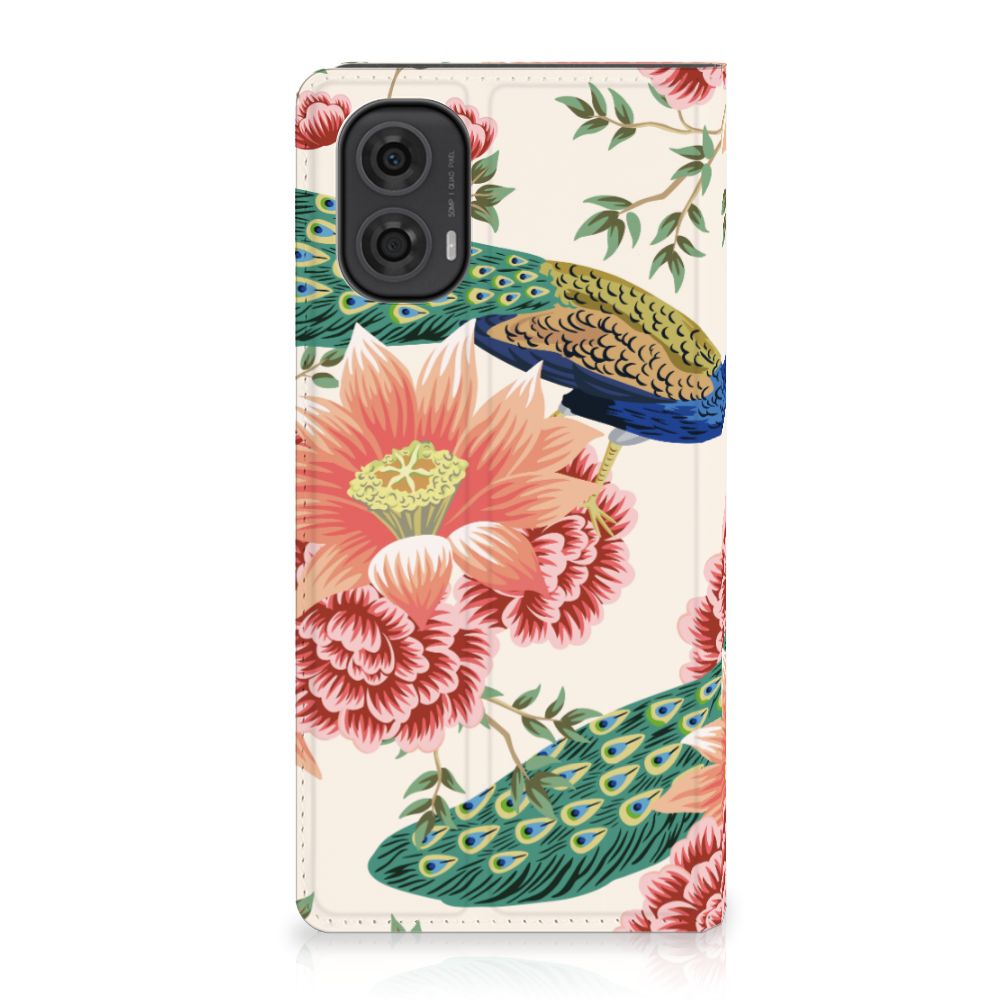 Motorola Moto G24 | G04 | G24 Power Hoesje maken Pauw met Bloemen