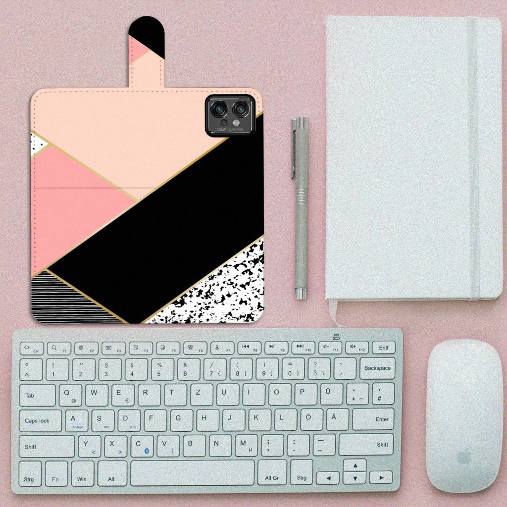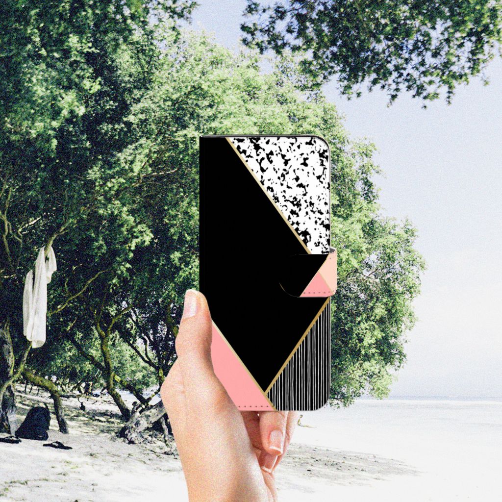 Motorola Moto G32 Book Case Zwart Roze Vormen
