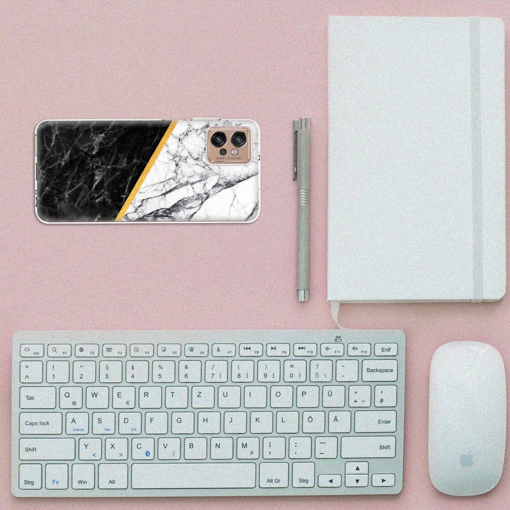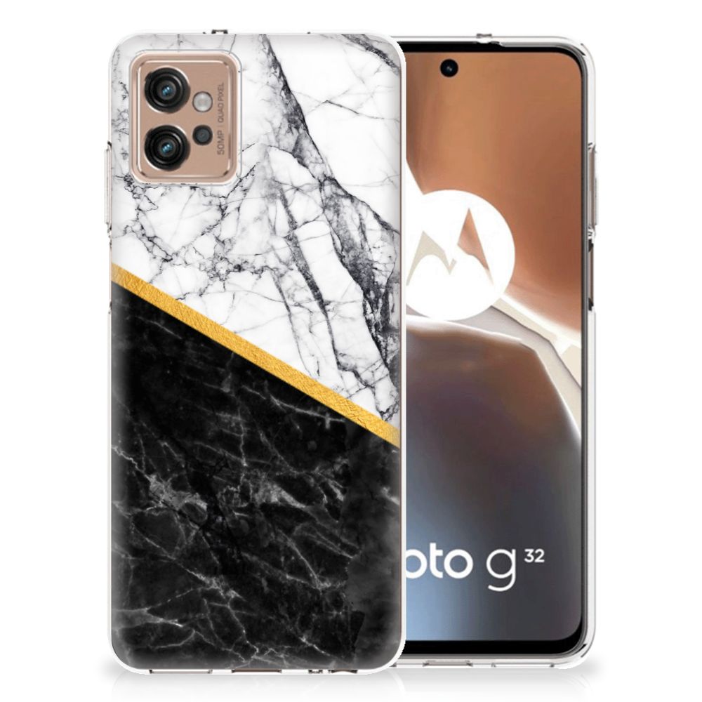 Motorola Moto G32 TPU Siliconen Hoesje Marmer Wit Zwart - Origineel Cadeau Man