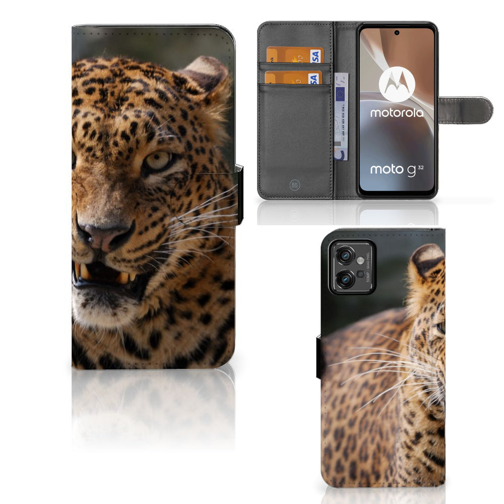 Motorola Moto G32 Telefoonhoesje met Pasjes Luipaard