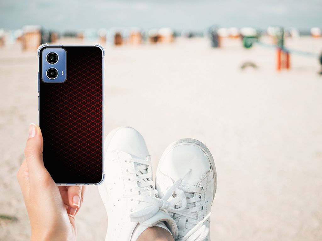 Motorola Moto G34 Doorzichtige Silicone Hoesje Geruit Rood