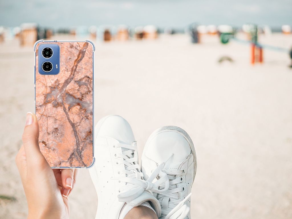 Motorola Moto G34 Anti-Shock Hoesje Marmer Oranje