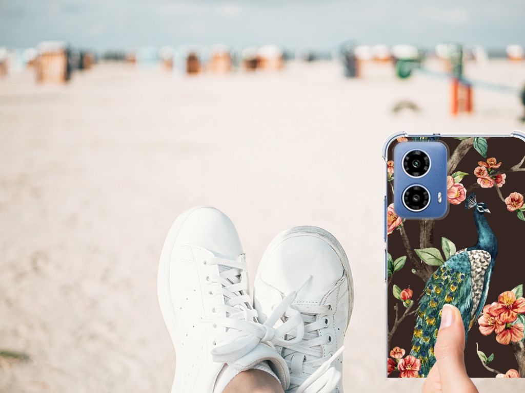 Motorola Moto G34 Hoesje maken Pauw met Bloemen