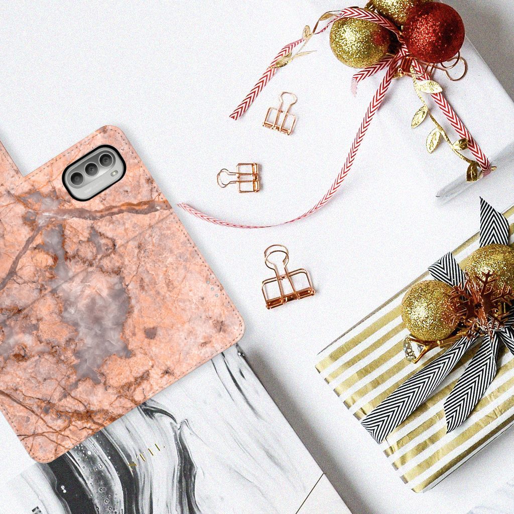 Motorola Moto G51 5G Bookcase Marmer Oranje