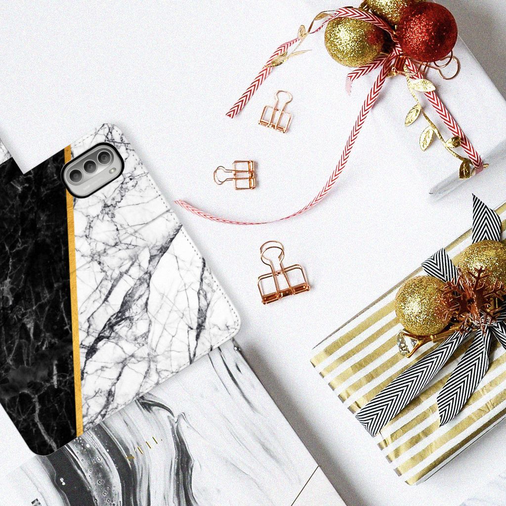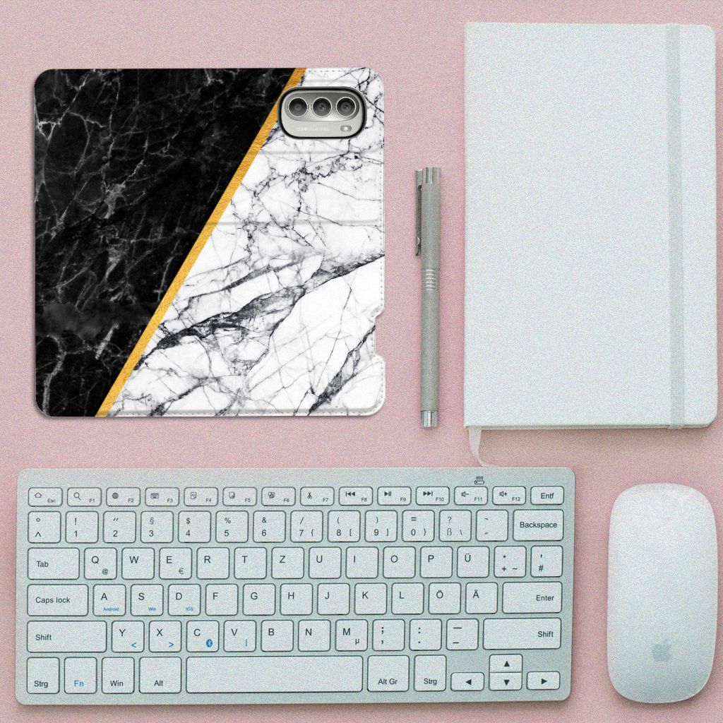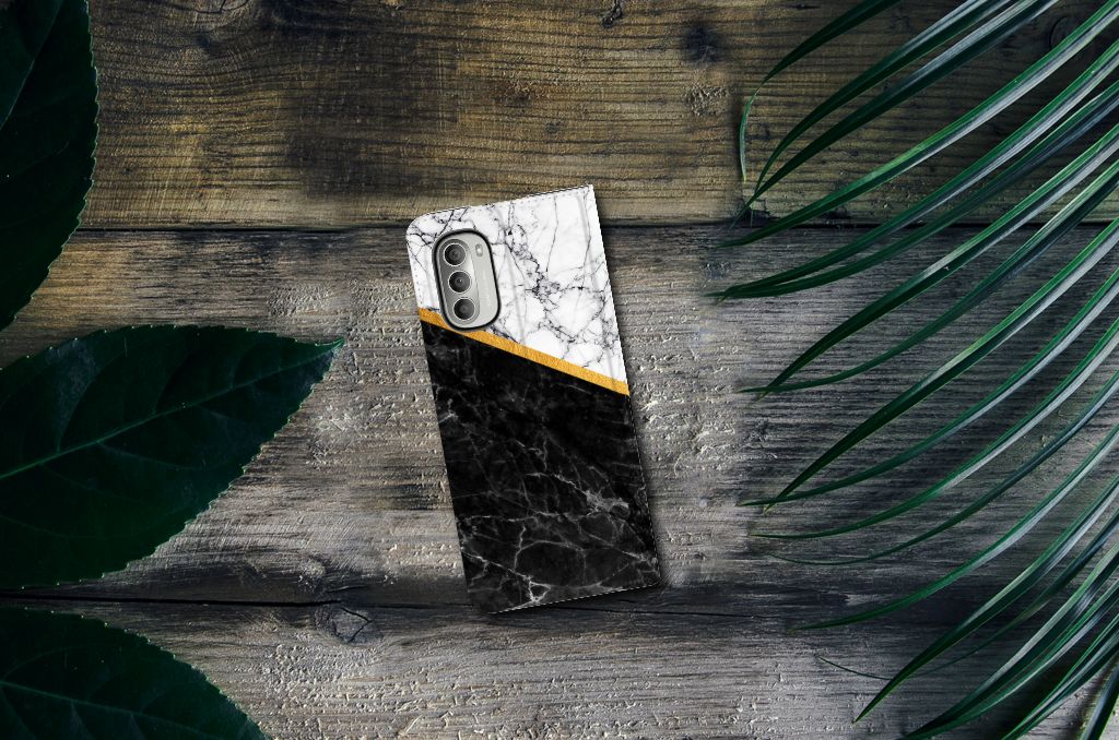 Motorola Moto G51 5G Bookcase Marmer Wit Zwart - Origineel Cadeau Man