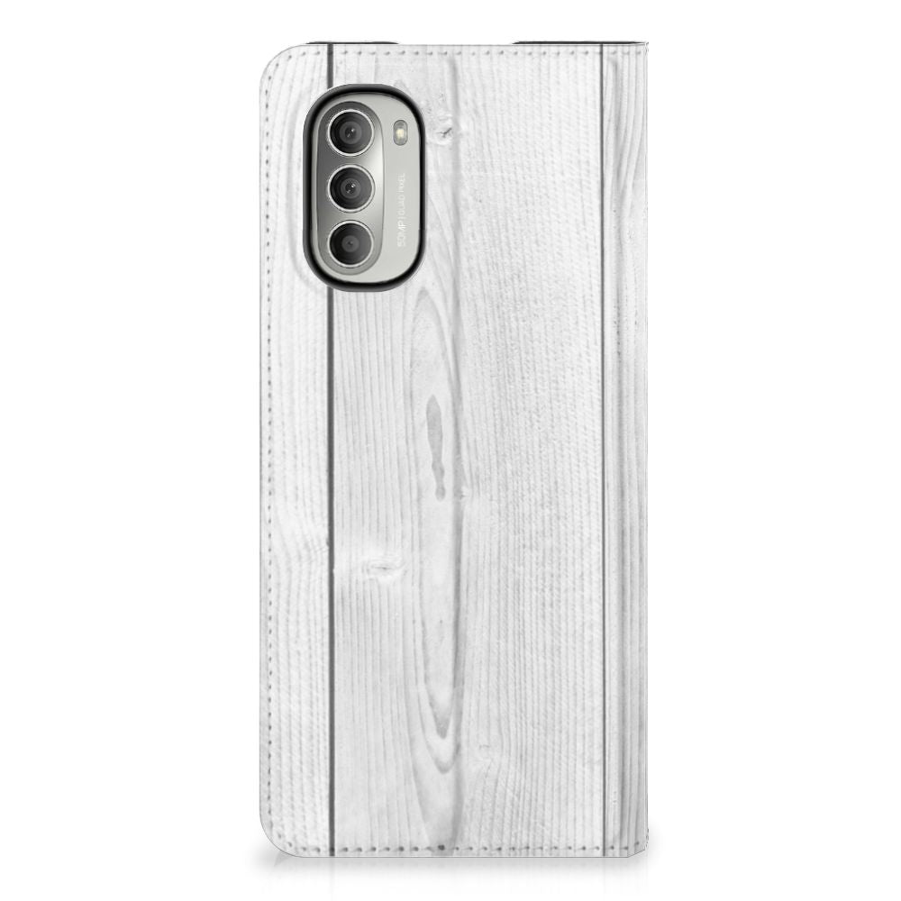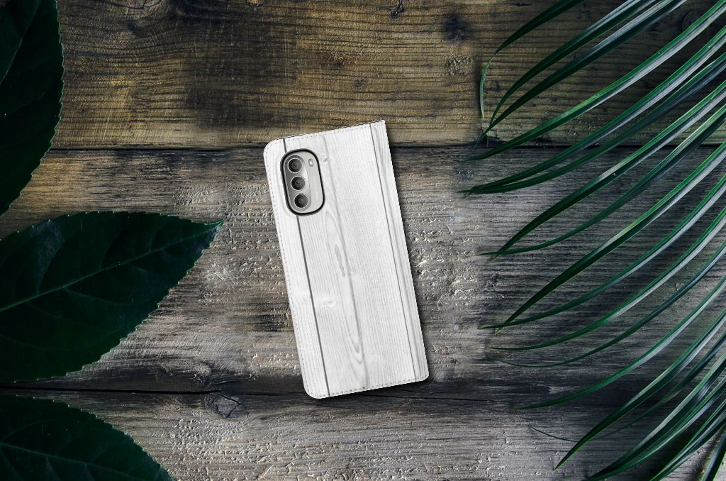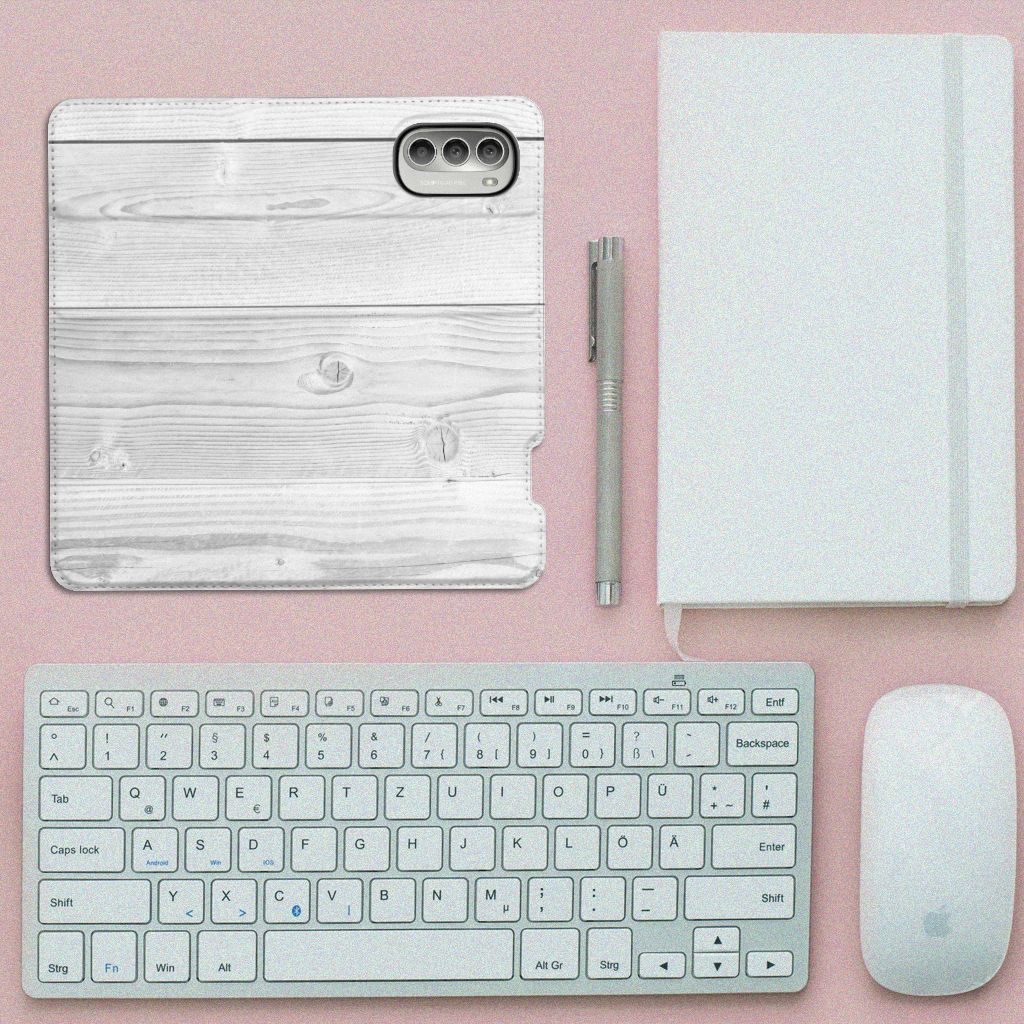 Motorola Moto G51 5G Book Wallet Case White Wood
