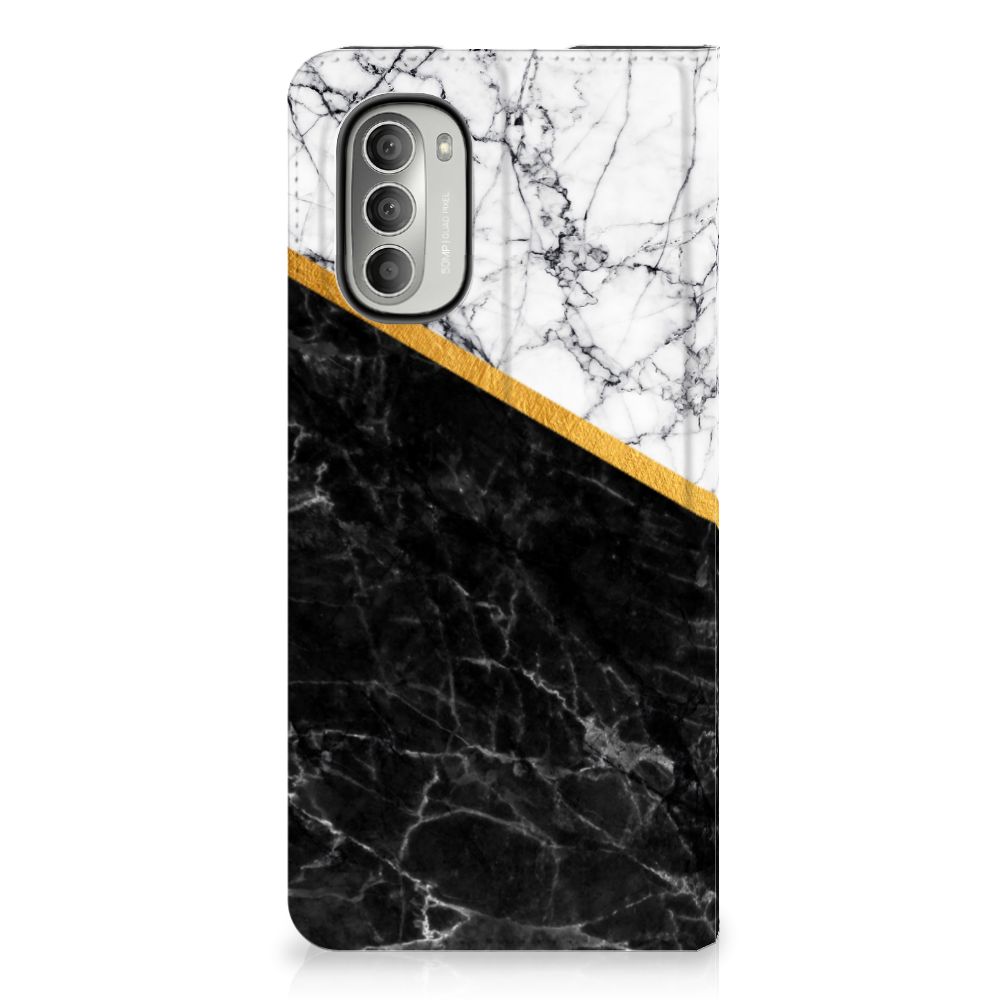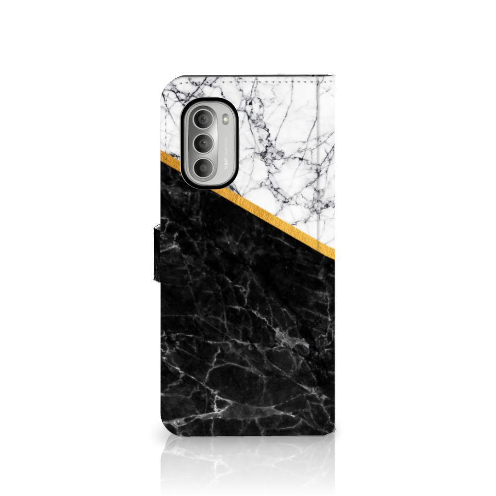 Motorola Moto G51 5G Standcase Marmer Wit Zwart - Origineel Cadeau Man