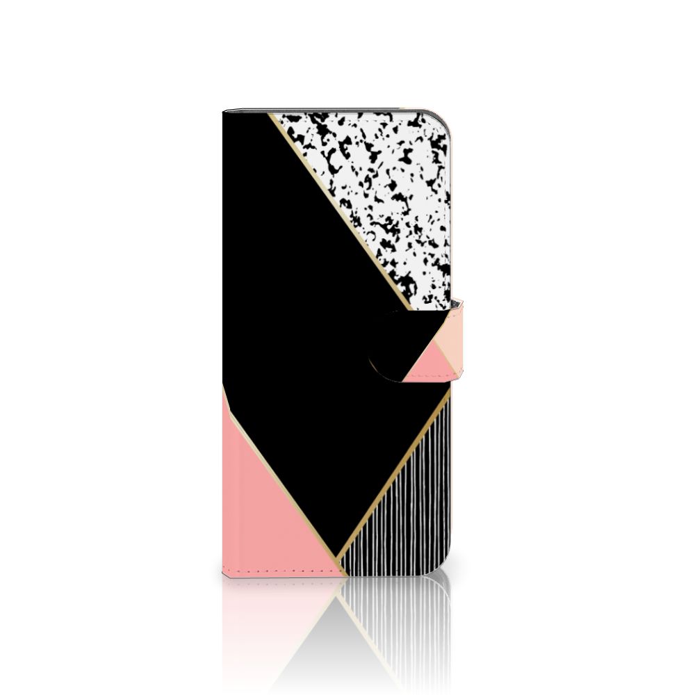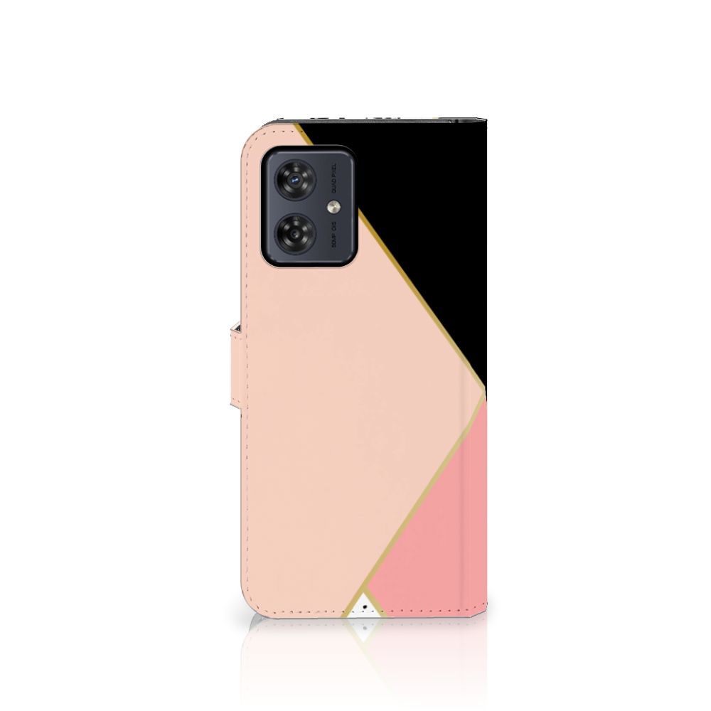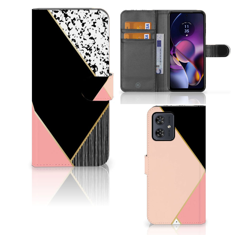 Motorola Moto G54 Book Case Zwart Roze Vormen