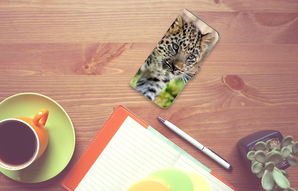 Motorola Moto G54 Telefoonhoesje met Pasjes Baby Luipaard