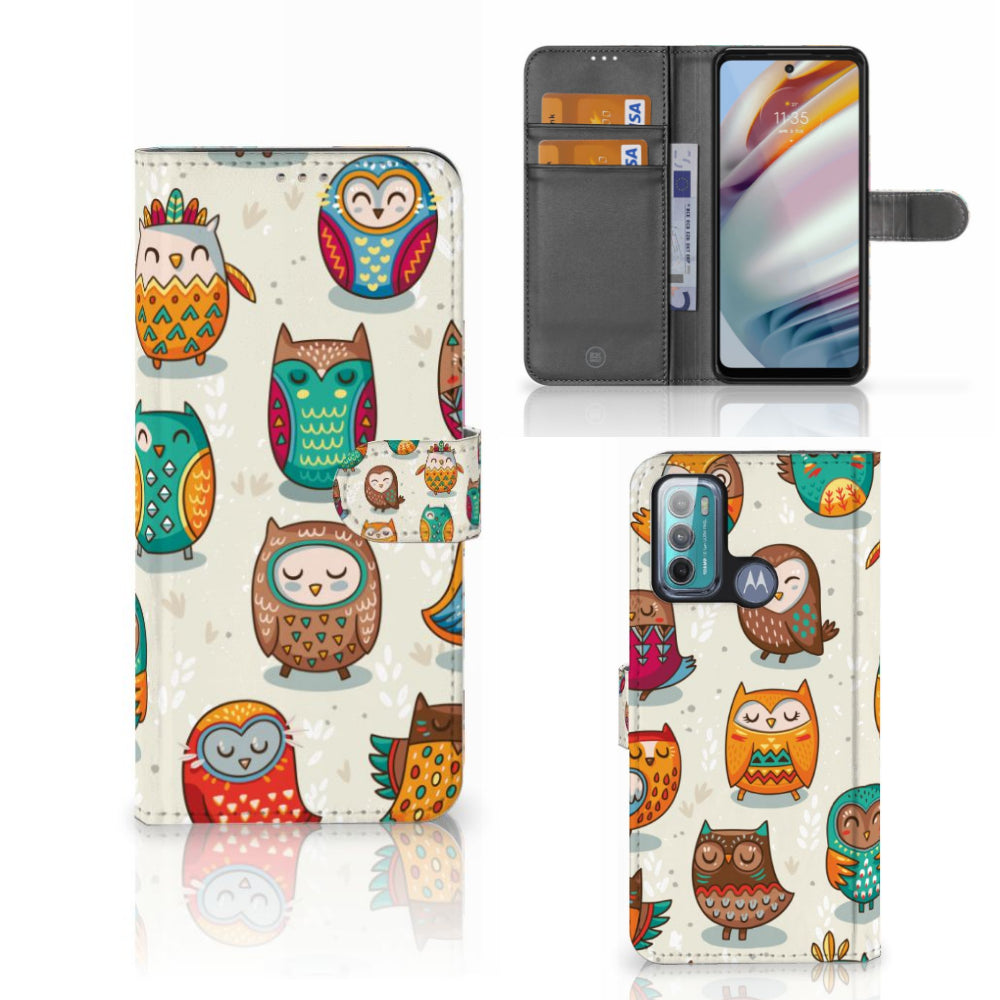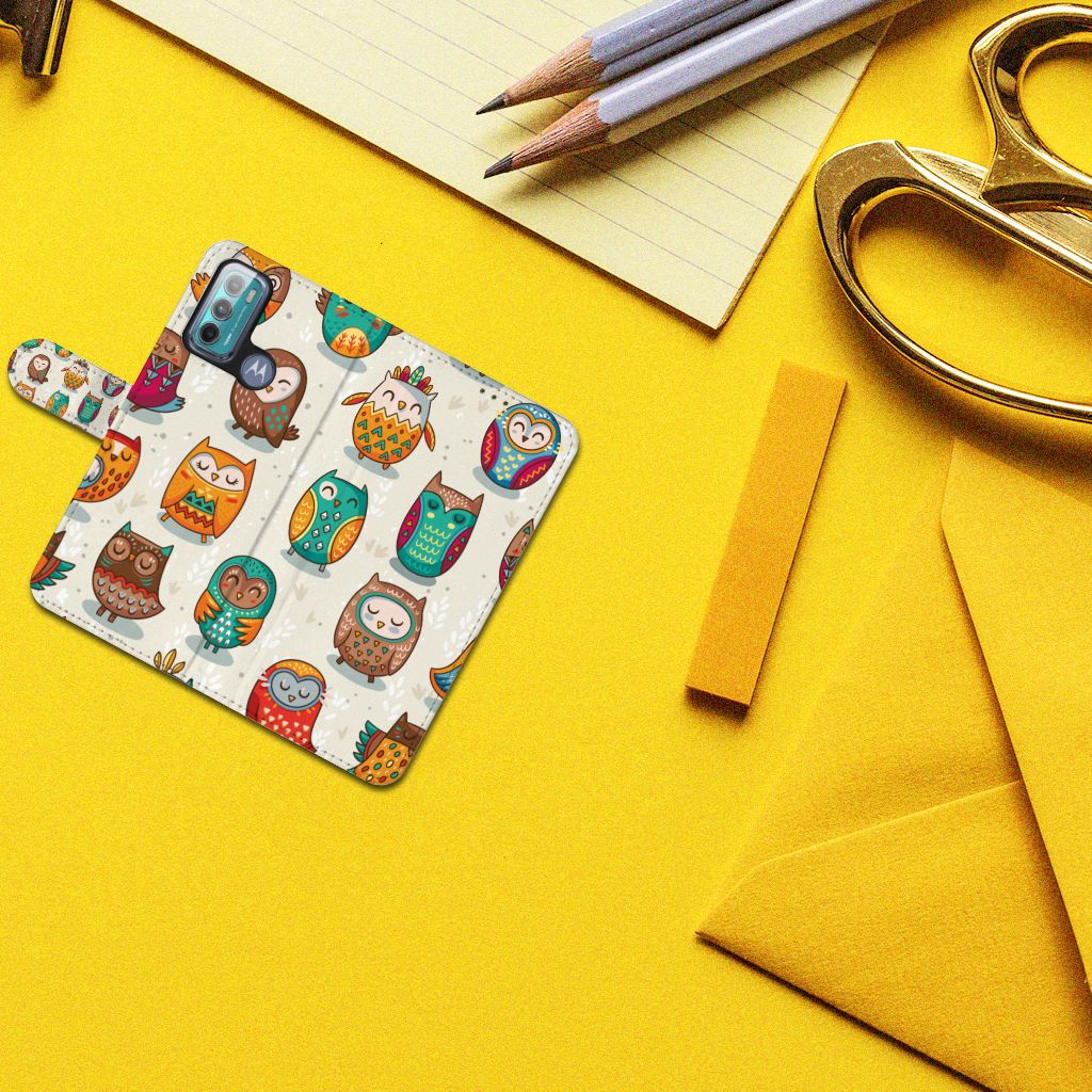 Motorola Moto G60 Telefoonhoesje met Pasjes Vrolijke Uilen