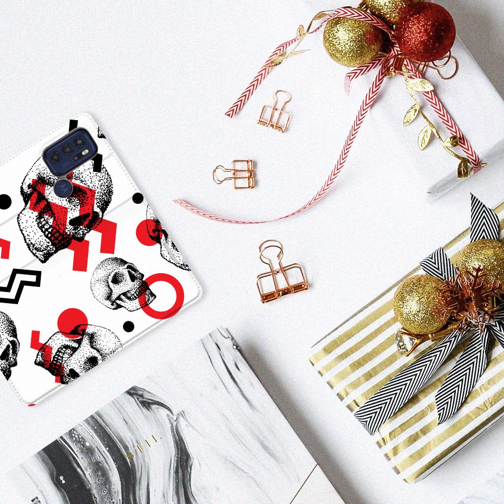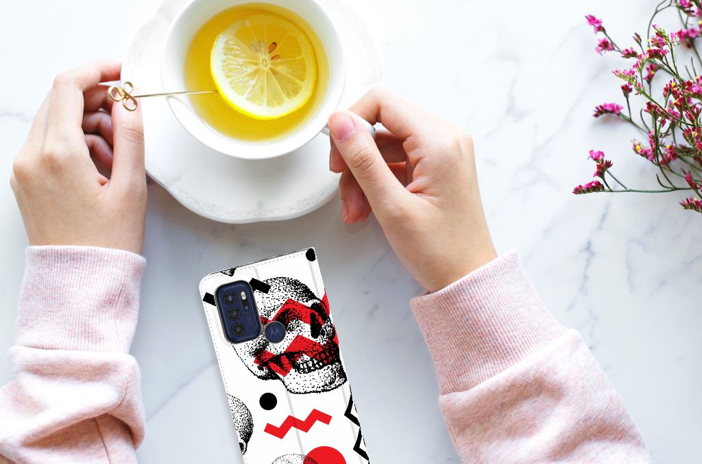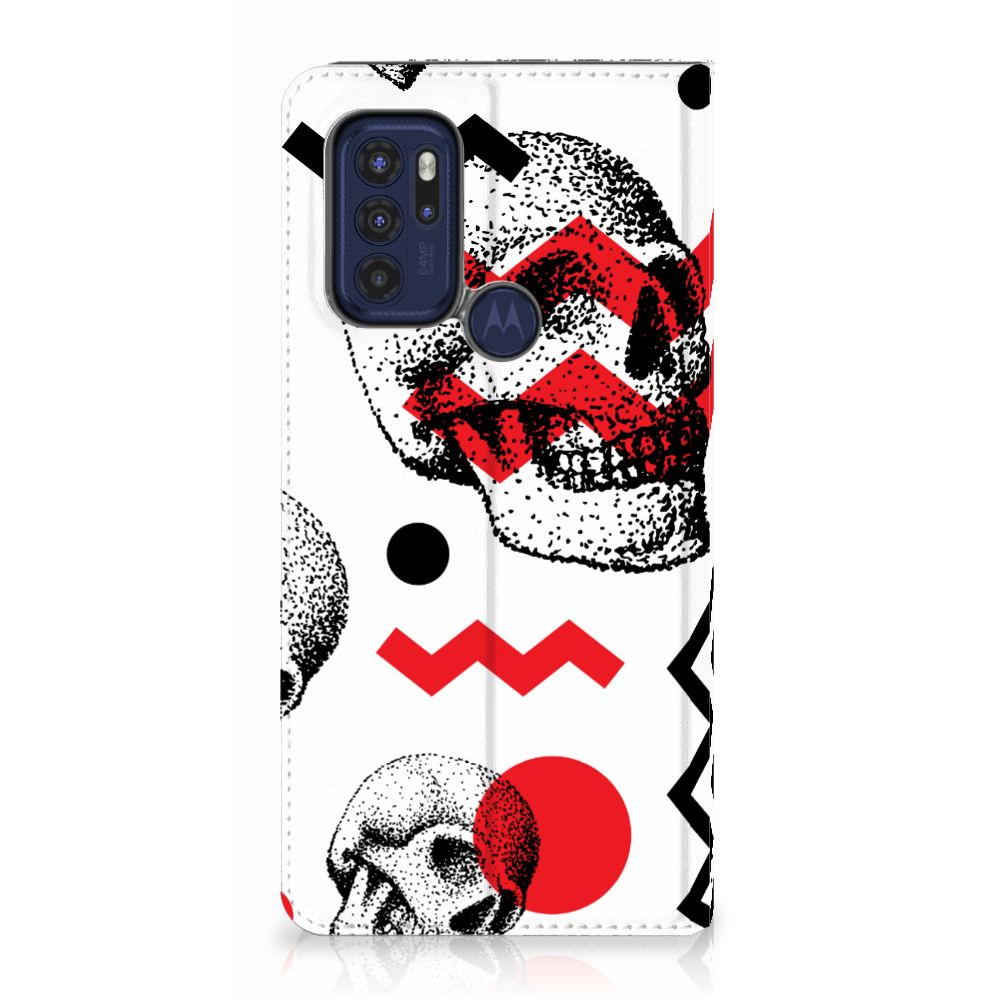 Mobiel BookCase Motorola Moto G60s Skull Red