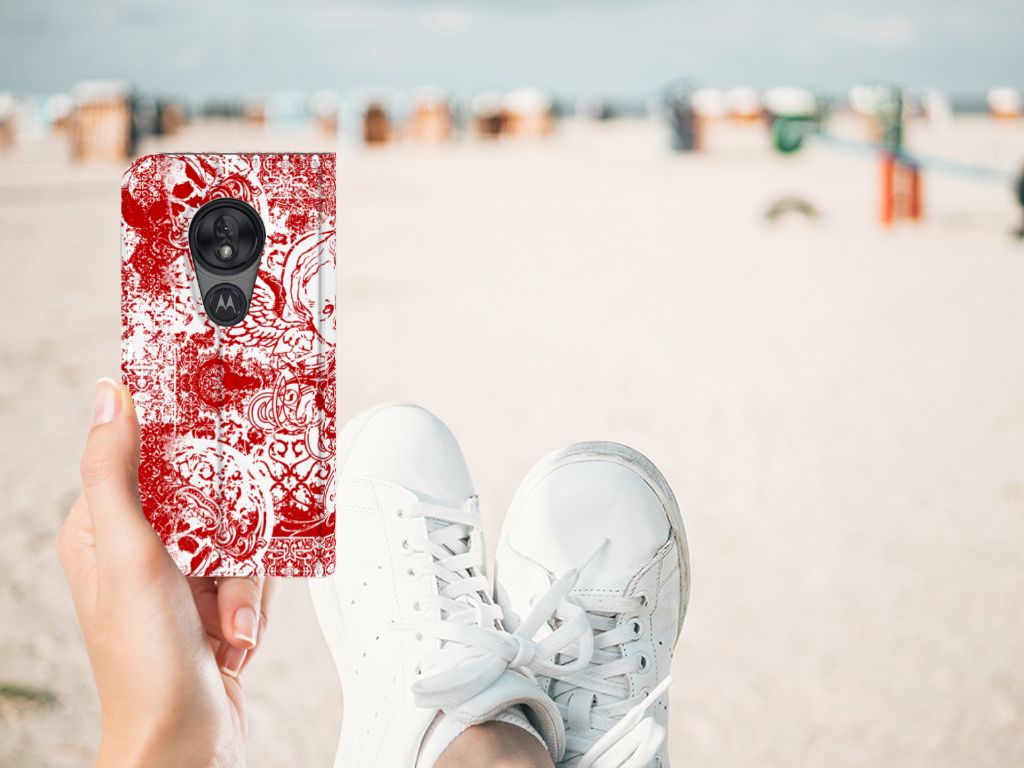 Mobiel BookCase Motorola Moto G7 Play Angel Skull Rood