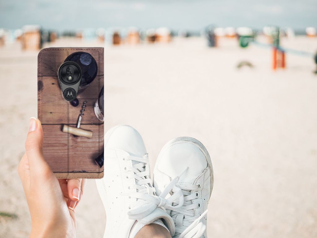 Motorola Moto G7 Play Book Wallet Case Licht Hout