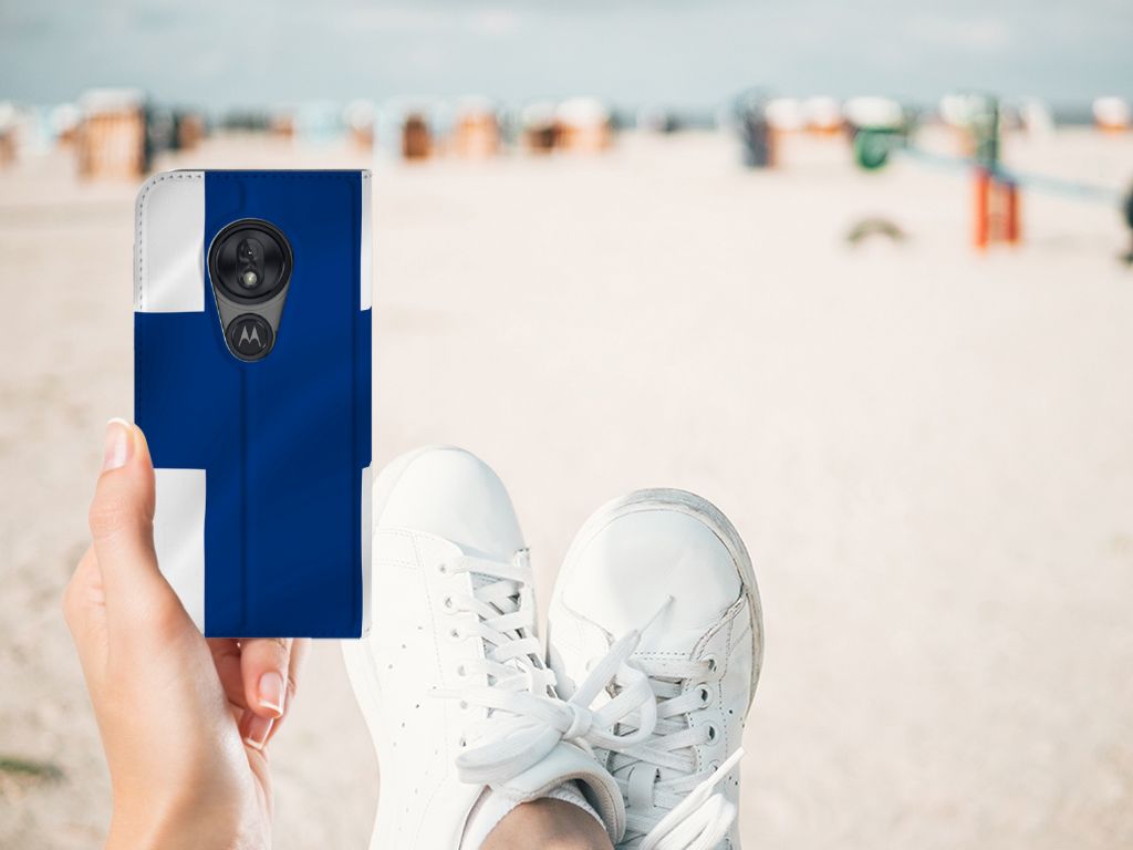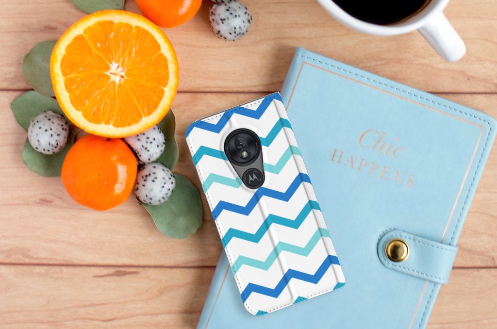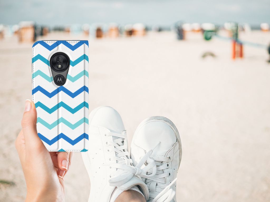 Motorola Moto G7 Play Hoesje met Magneet Zigzag Blauw