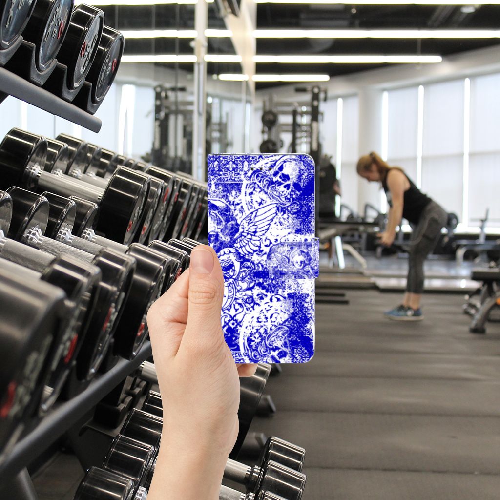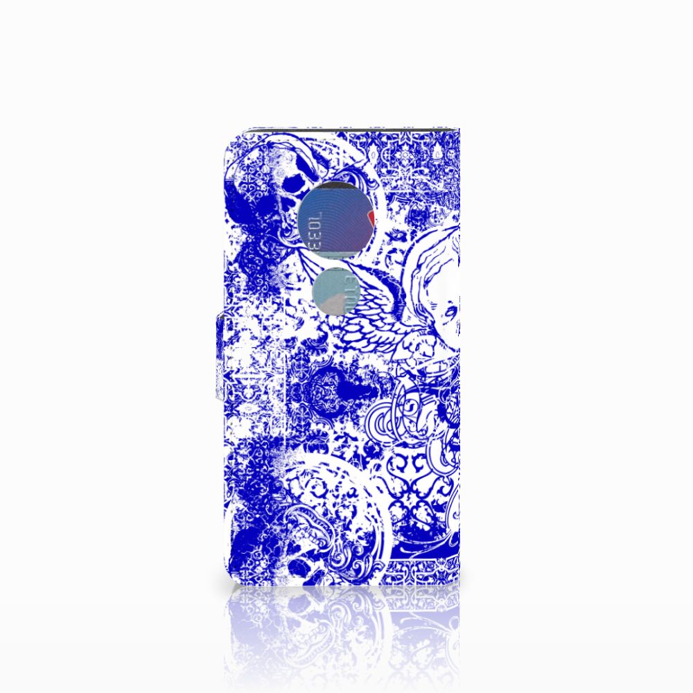 Telefoonhoesje met Naam Motorola Moto G7 Play Angel Skull Blauw
