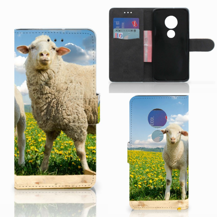 Motorola Moto G7 Play Telefoonhoesje met Pasjes Schaap en Lammetje