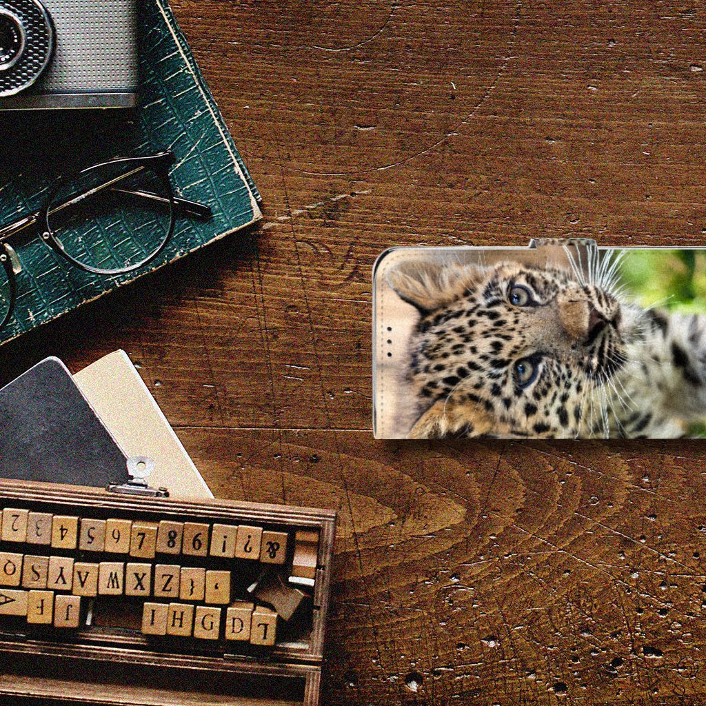 Motorola Moto G7 Power Telefoonhoesje met Pasjes Baby Luipaard
