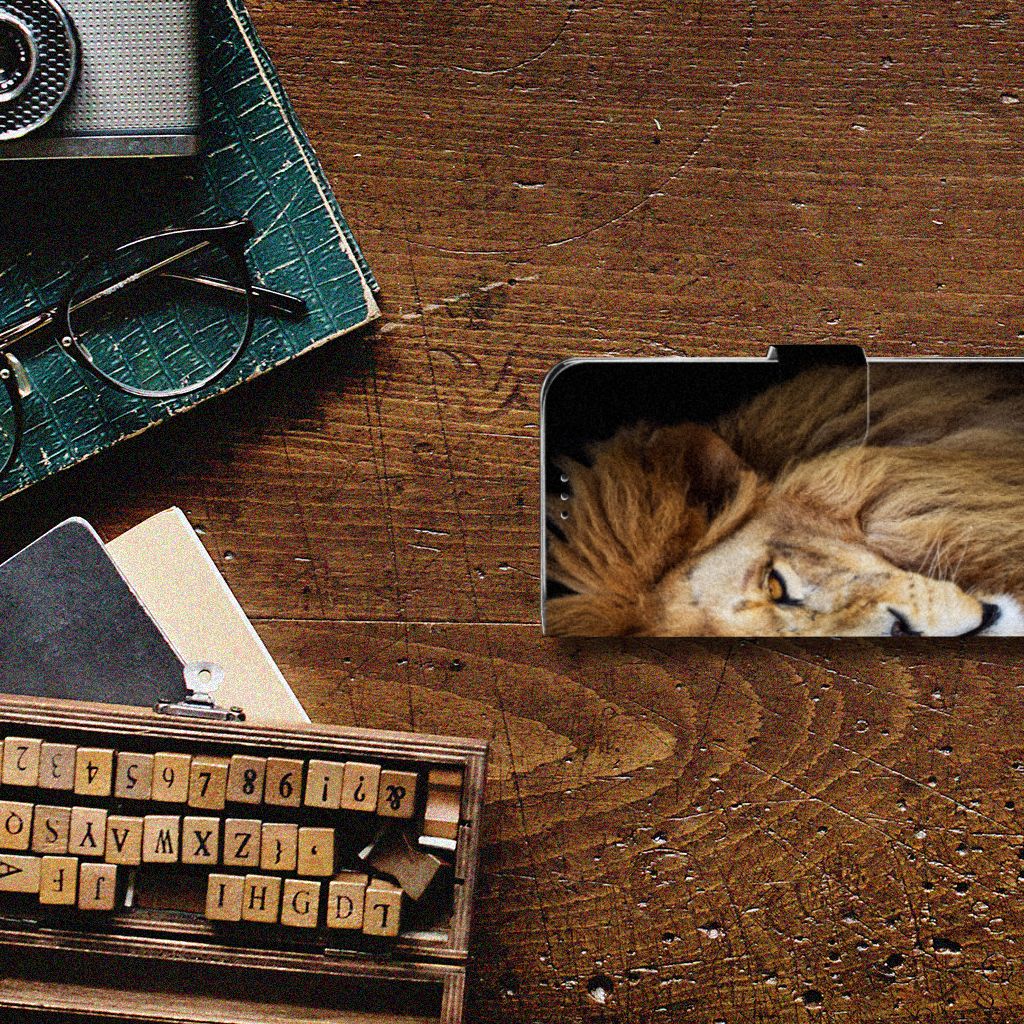 Motorola Moto G7 Power Telefoonhoesje met Pasjes Leeuw