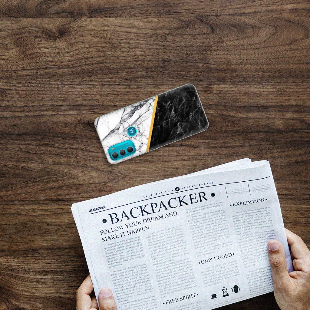 Motorola Moto G71 5G TPU Siliconen Hoesje Marmer Wit Zwart - Origineel Cadeau Man
