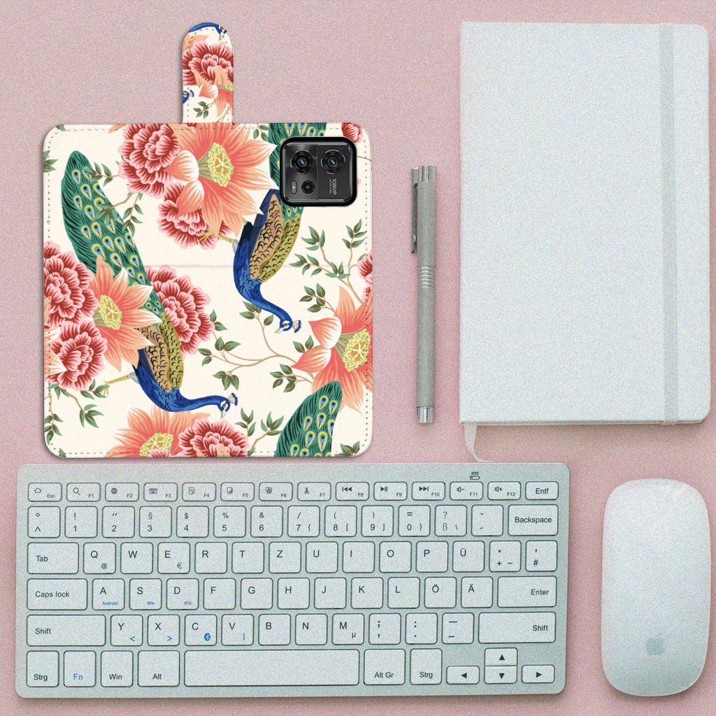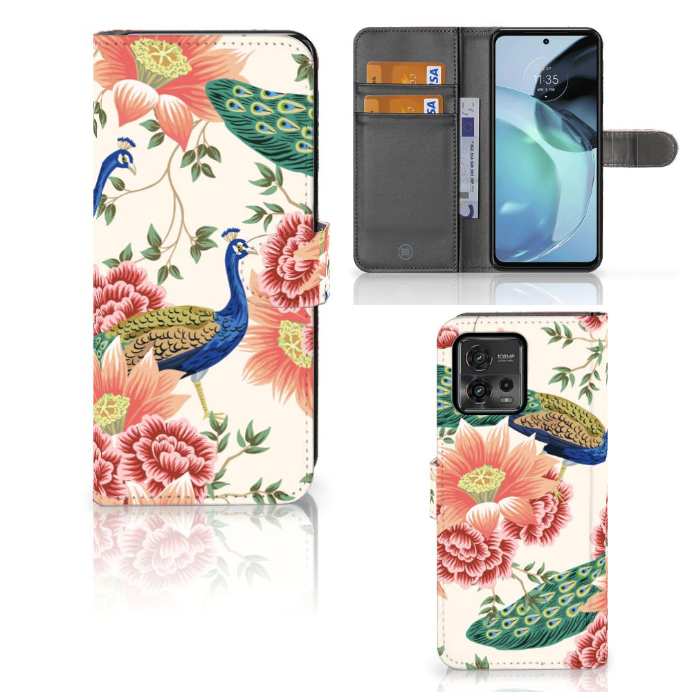 Telefoonhoesje met Pasjes voor Motorola Moto G72 Pink Peacock