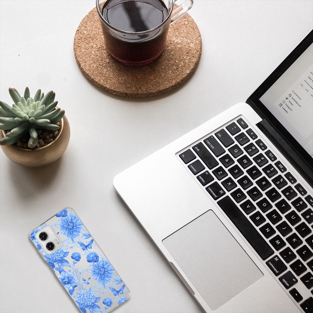TPU Case voor Motorola Moto G73 Flowers Blue
