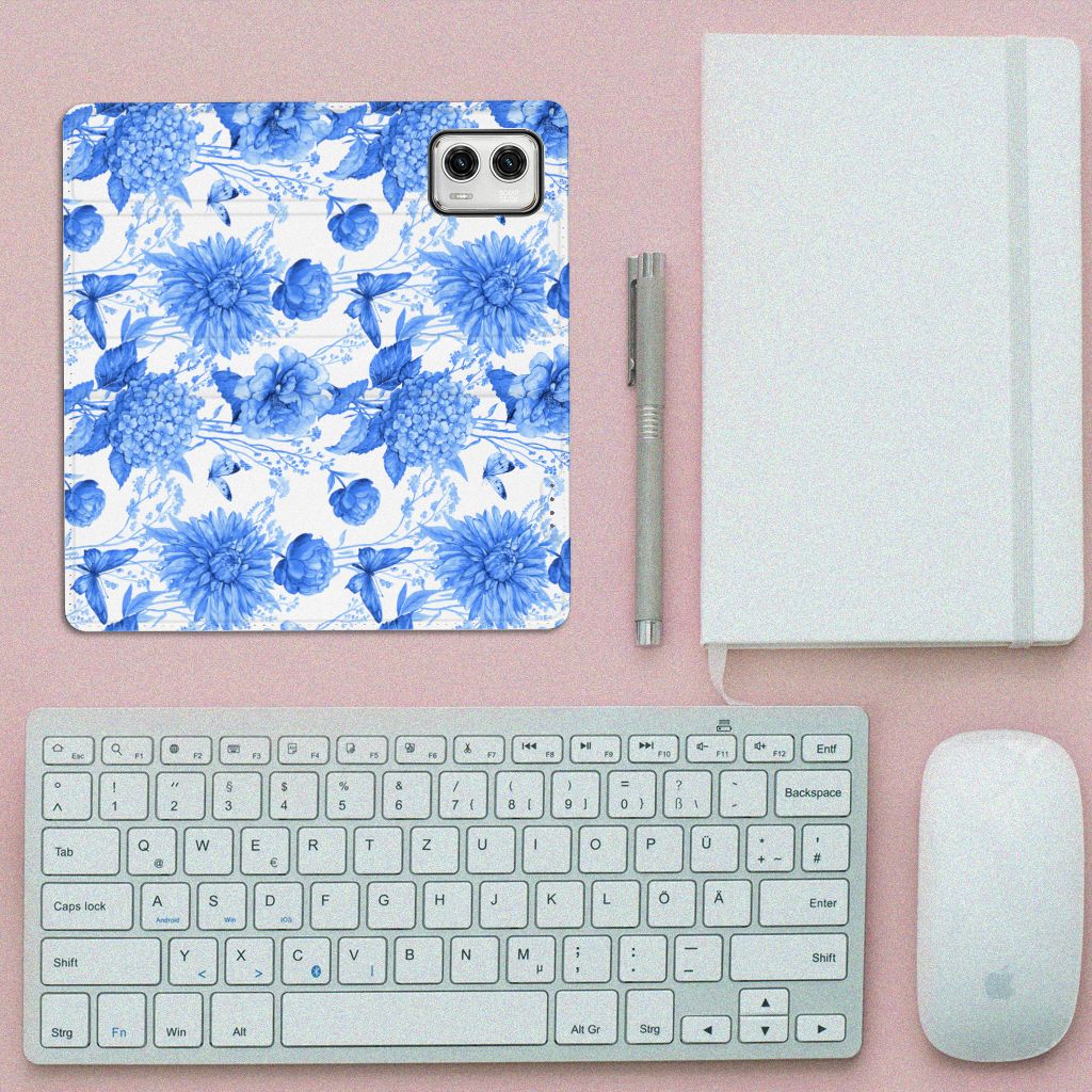Smart Cover voor Motorola Moto G73 Flowers Blue
