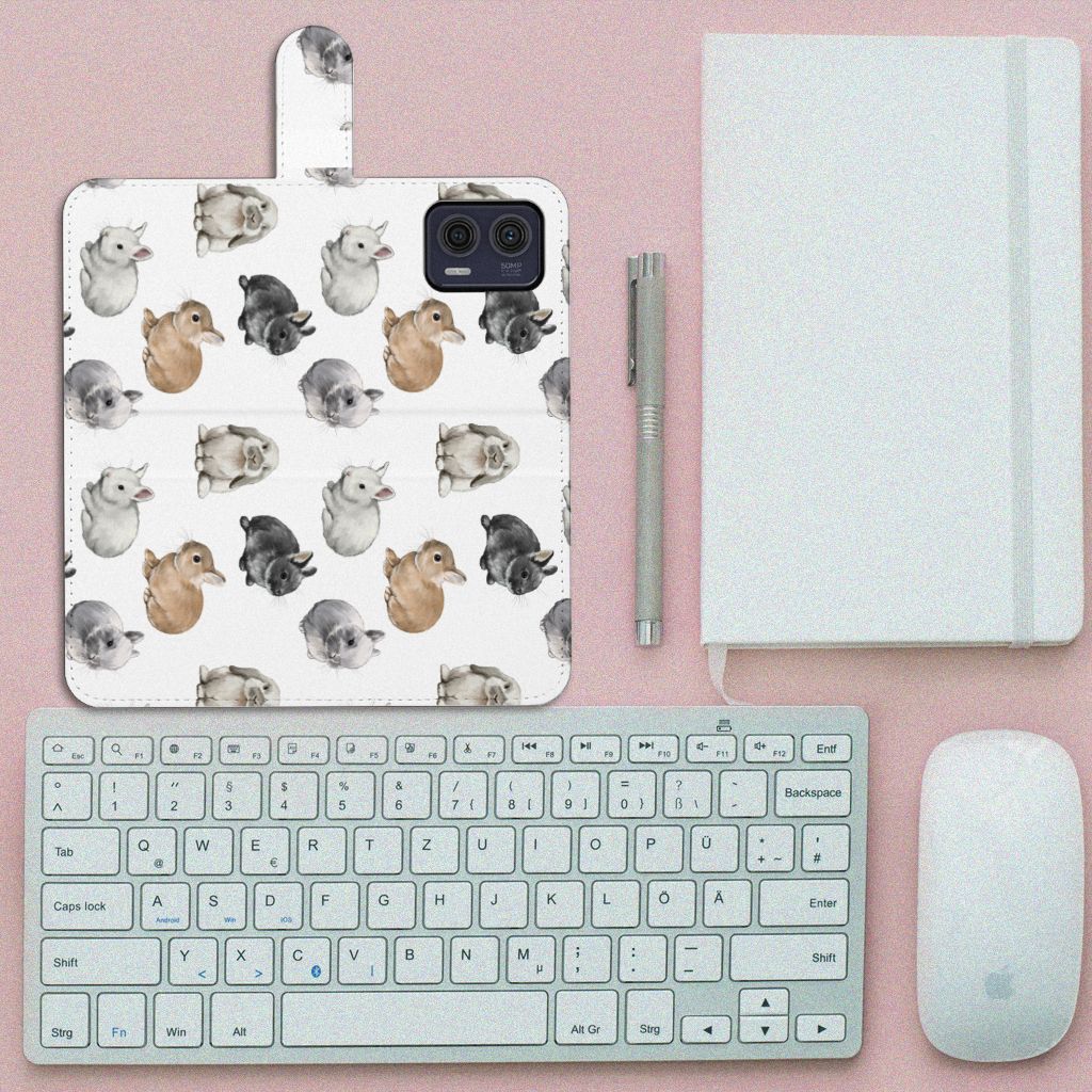 Telefoonhoesje met Pasjes voor Motorola Moto G73 Konijntjes