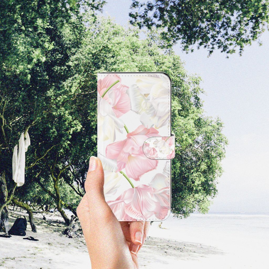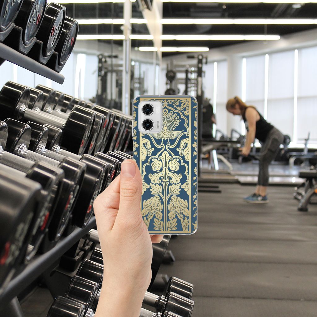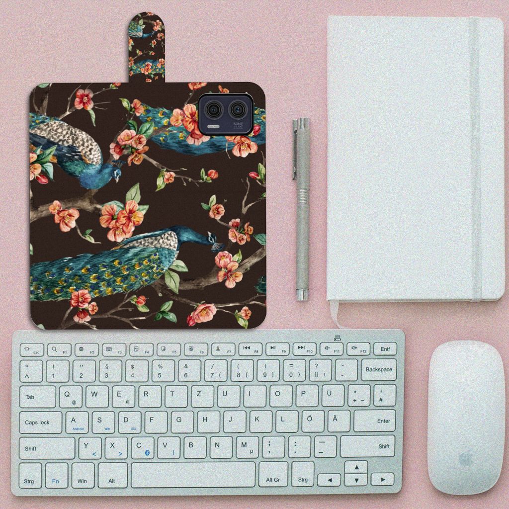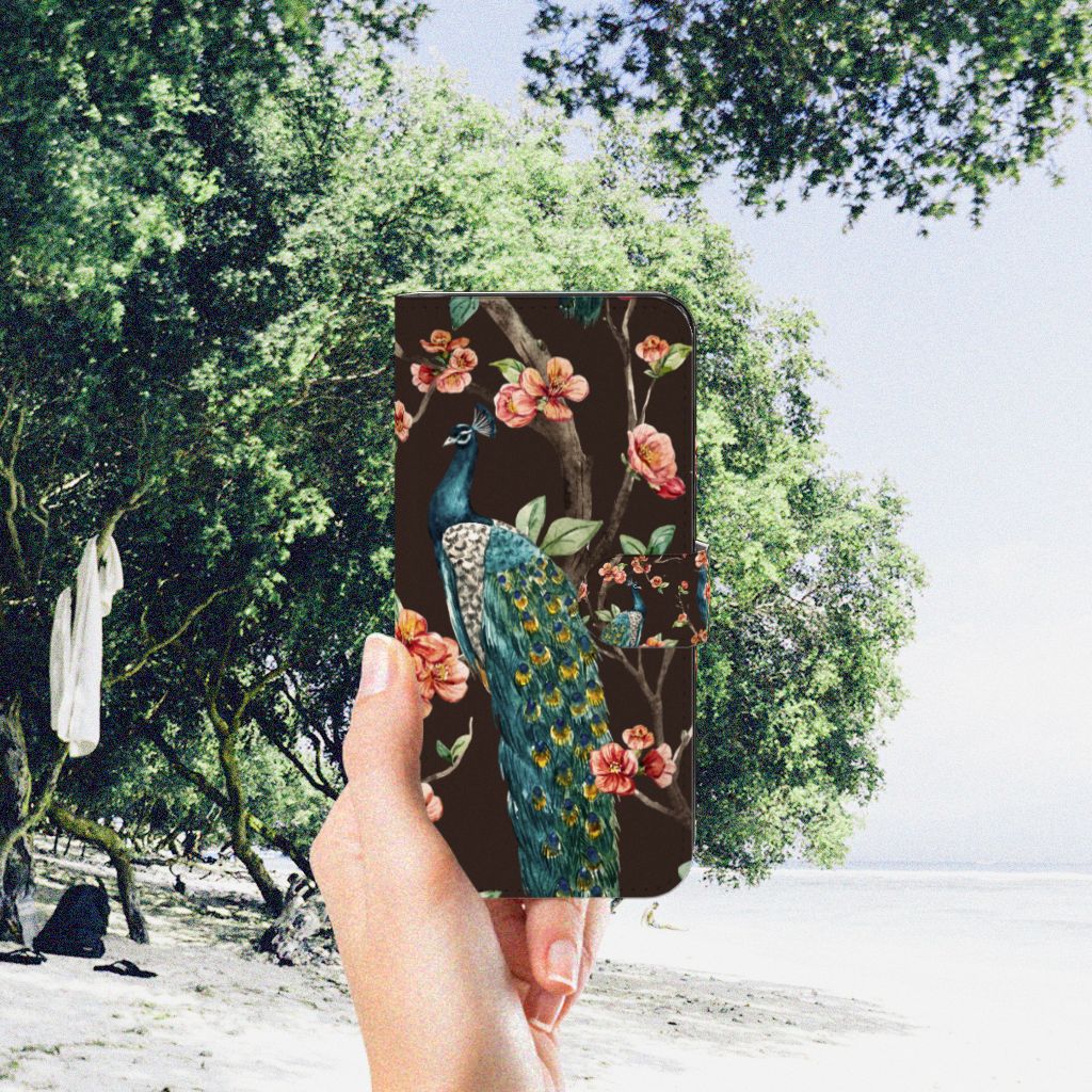 Motorola Moto G73 Telefoonhoesje met Pasjes Pauw met Bloemen