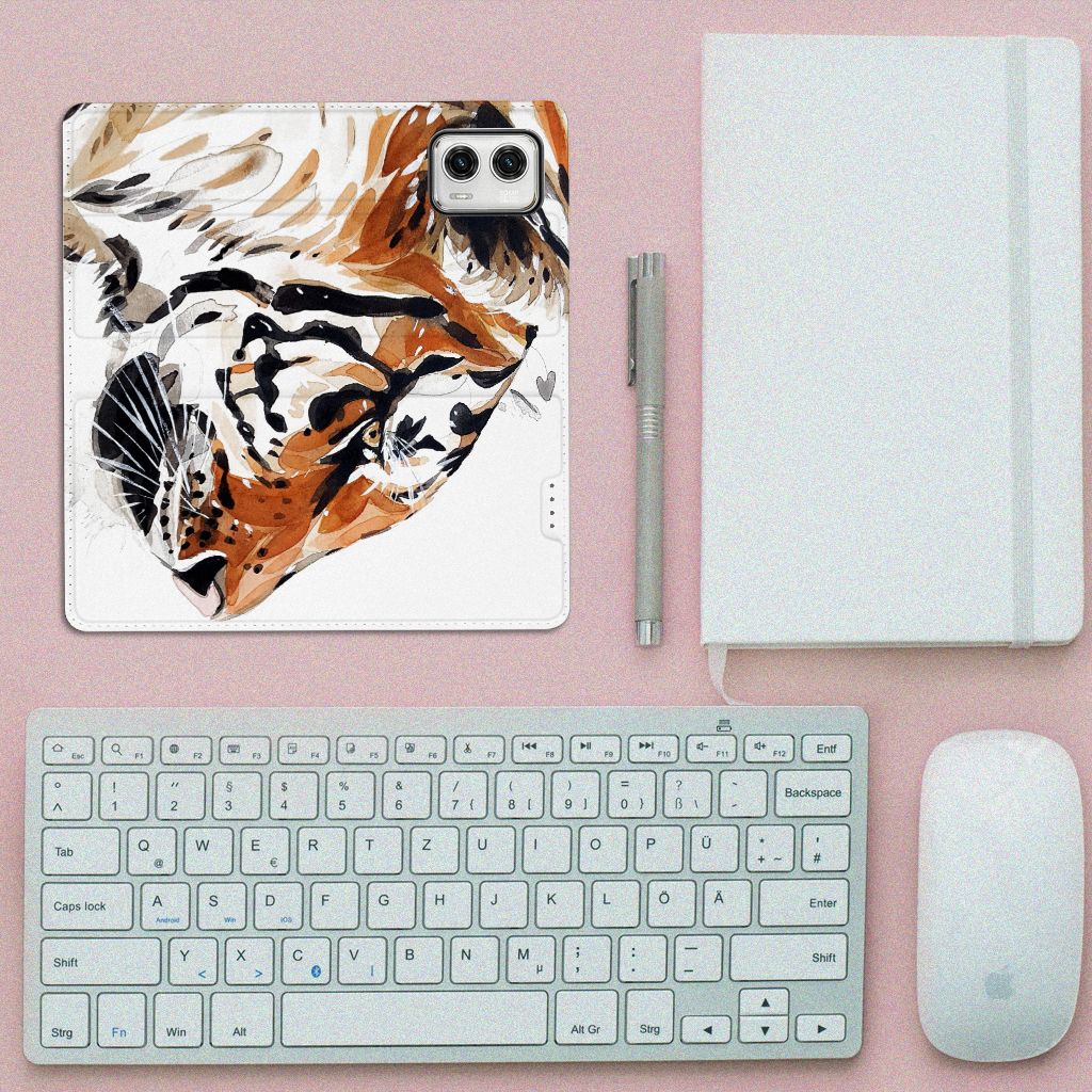 Bookcase Motorola Moto G73 Watercolor Tiger