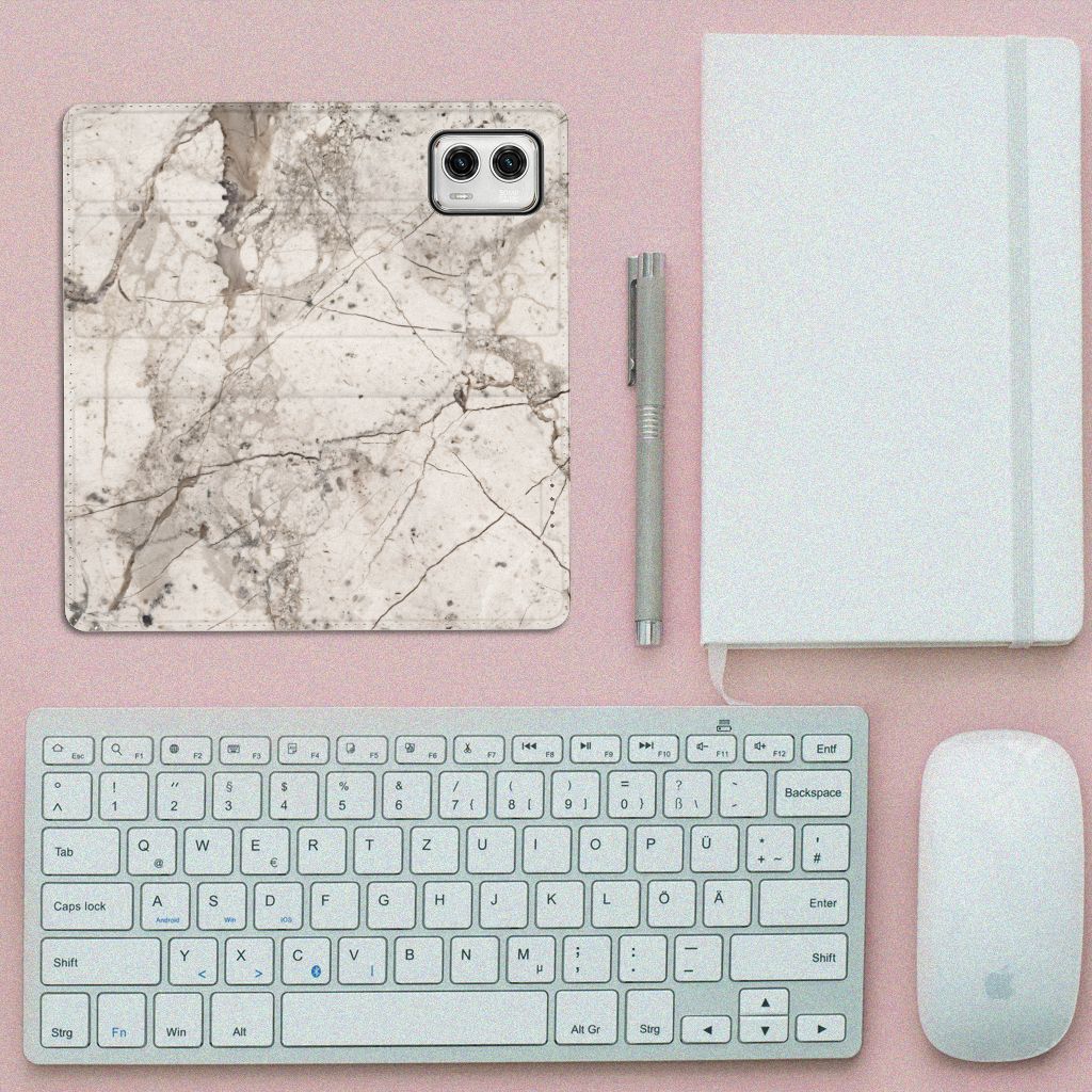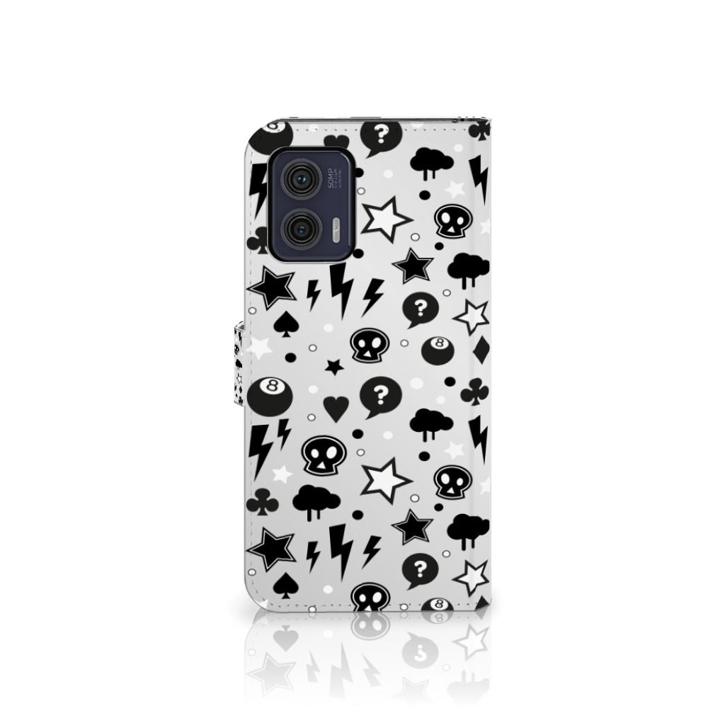 Motorola Moto G73 Standcase Marmer Wit Zwart - Origineel Cadeau Man